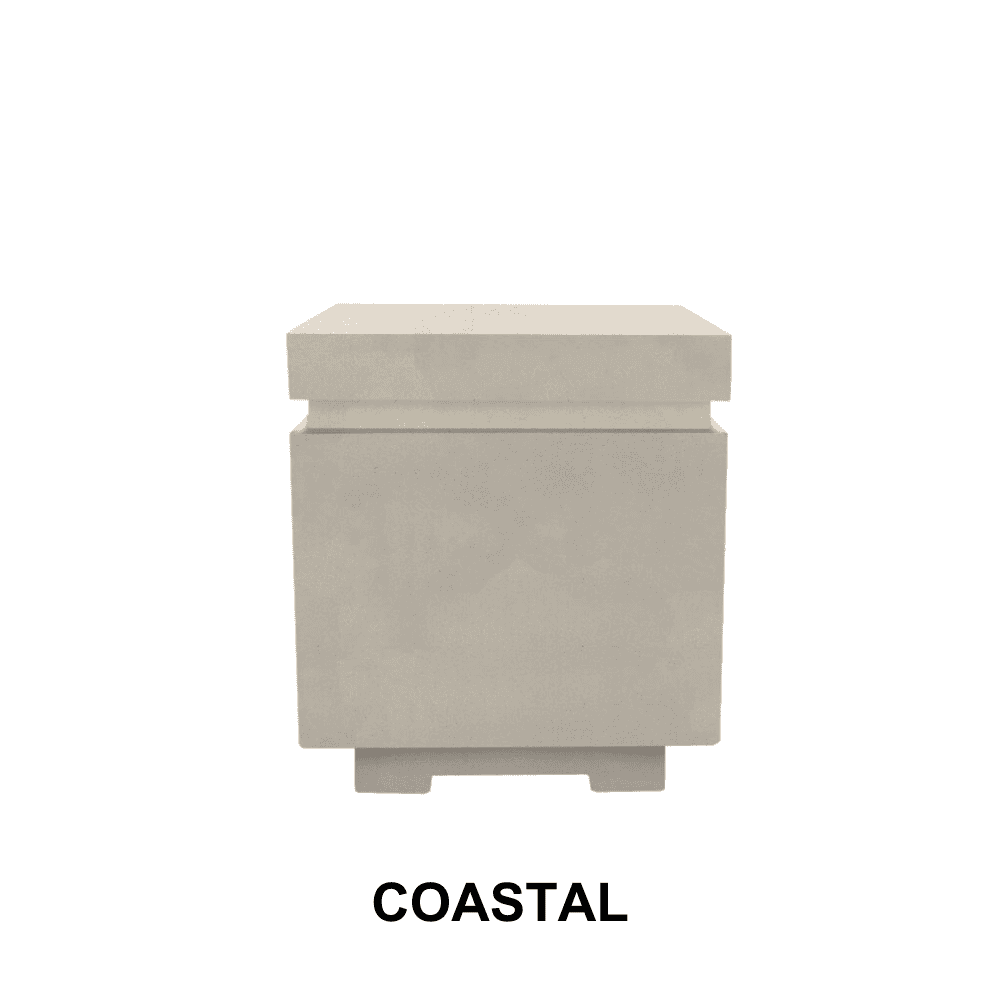 BOXHILL's Tav Square Outdoor Concrete Propane Enclosure provides both coverage and functions nicely as an end table. Each cover has been hand-crafted using our custom patina finishing process, guaranteeing a one-of-a-kind creation with subtle variation. The 20" by 20" size table provides a beautiful and functional side piece for any backyard, patio or lounging area. Pairs well with our square / rectangle fire tables.