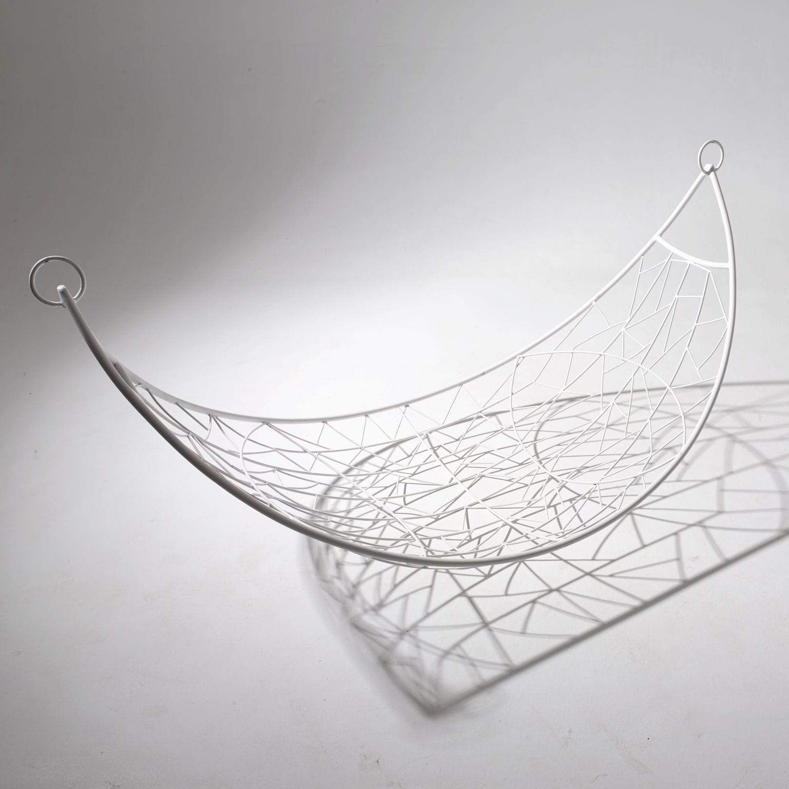 The SHOPBOXHILL Melon Hanging Chair is inspired by a hammock - but with its structured hard frame it will not fold in and is thus hugely comfortable. Its organic shape is reminiscent of a slice of fruit like a melon. It is spacious and comfortable with ample room to relax. It is great for two people - especially when facing each other. An ideal piece to inspire conversation. The pattern detail is inspired by the texture on melon skin, but also by natural textures like the patterns of the veins in leaves, tree branches intersecting, the patterns in dragonfly wings and cracked soil. The chair has been designed to be very comfortable and relaxing. Ideal for chilling, reading a book or just hanging out. Each one is made by hand, and the core frame is standard to ensure consistency in shape and comfort. Due to the variance of craftsmanship going into each chair, every piece has individualism and uniqueness in some of the pattern detailing. They are ideal for inside or outside use and look gorgeous on a deck, patio, hanging from a branch of a tree or anywhere indoors.