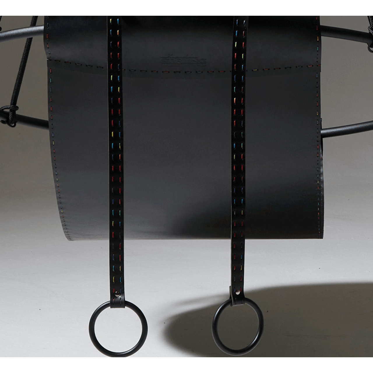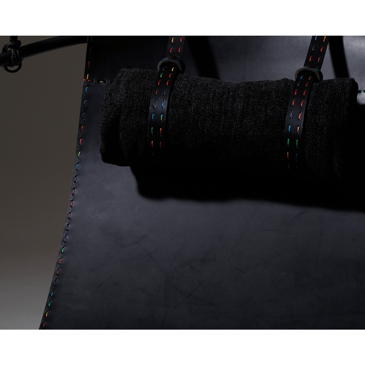 Pairing the purity of simple tubular steel with the sensual warmth of natural hide, it has a sleek look and an air of functional elegance. Each one is handmade with care by our craftsmen. Form-fitting comfort, perfect for indoor and covered outdoor spaces.