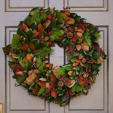View full detailsColonial Trimmings Wreath - Fresh Our iconic circlet of lush magnolia greenery stole the show in Southern Living's Idea House (Nashville, TN). Inte...