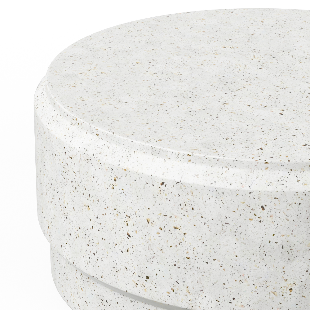 Barrel Outdoor Concrete Round Coffee Table has clean-line style that provides an element of industrial design crafted for indoor and outdoor use. This concrete coffee table also features a stepped or beveled edge near the top and bottom, creating a layered effect.