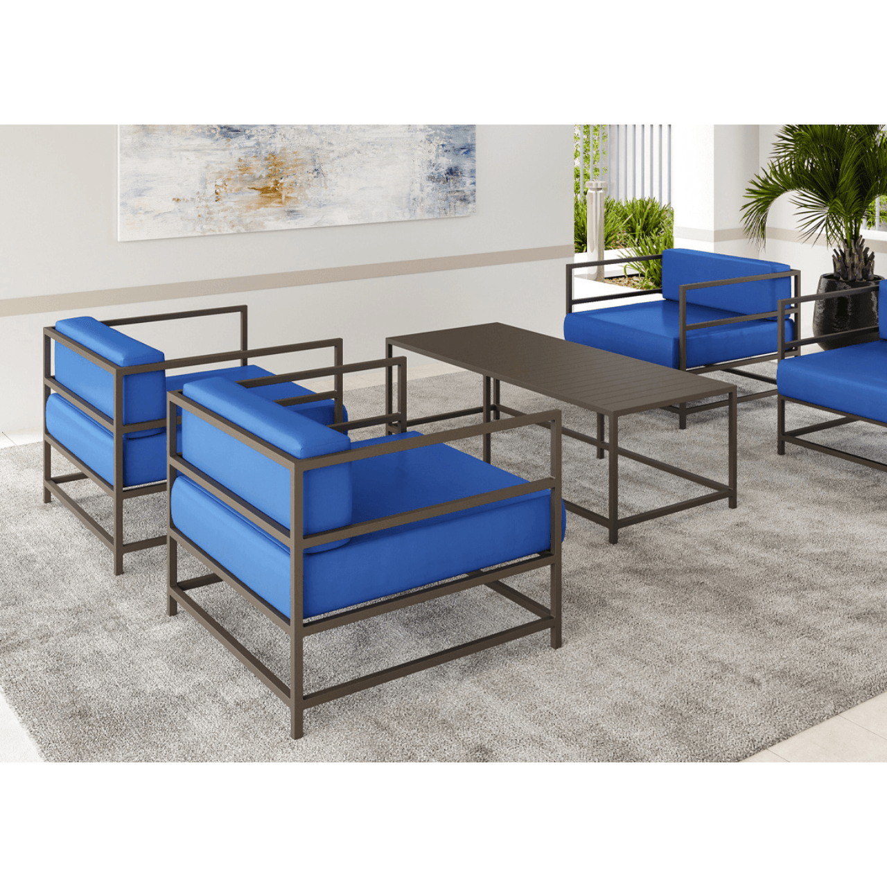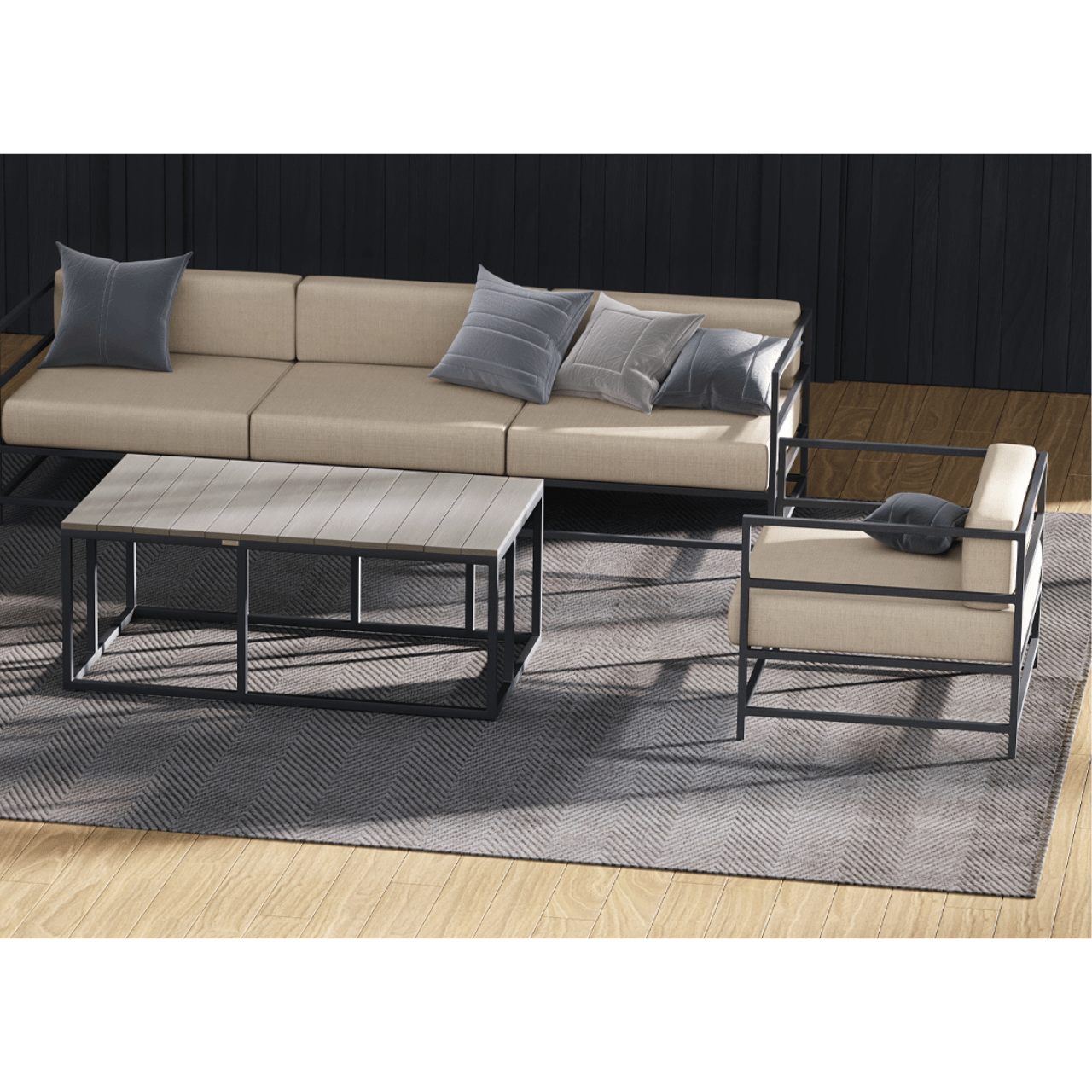 The poolside Delano Outdoor Collection is a sofa set made of upholstery fabric that blends cost, comfort, and practicality. It is also long-lasting and easy to maintain.