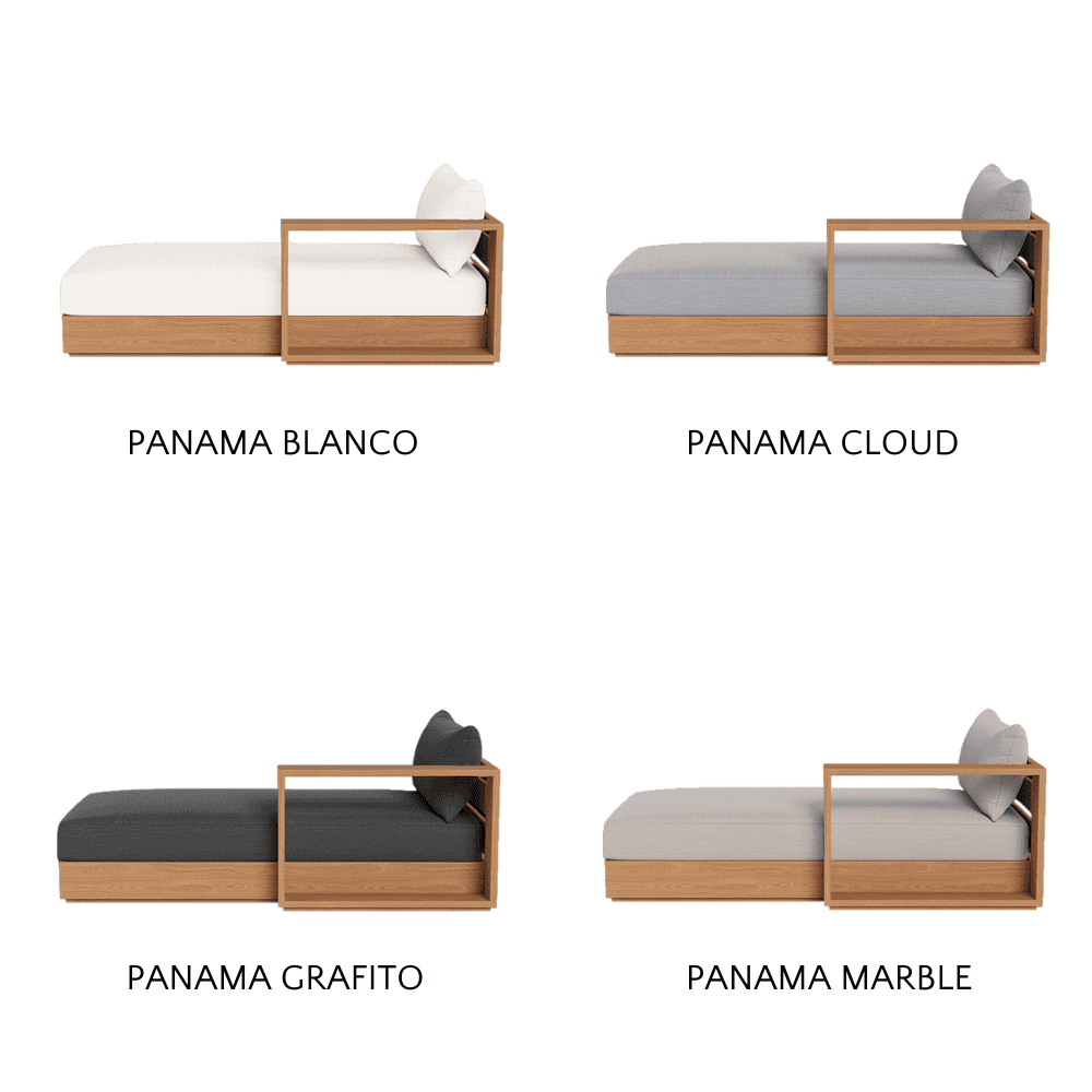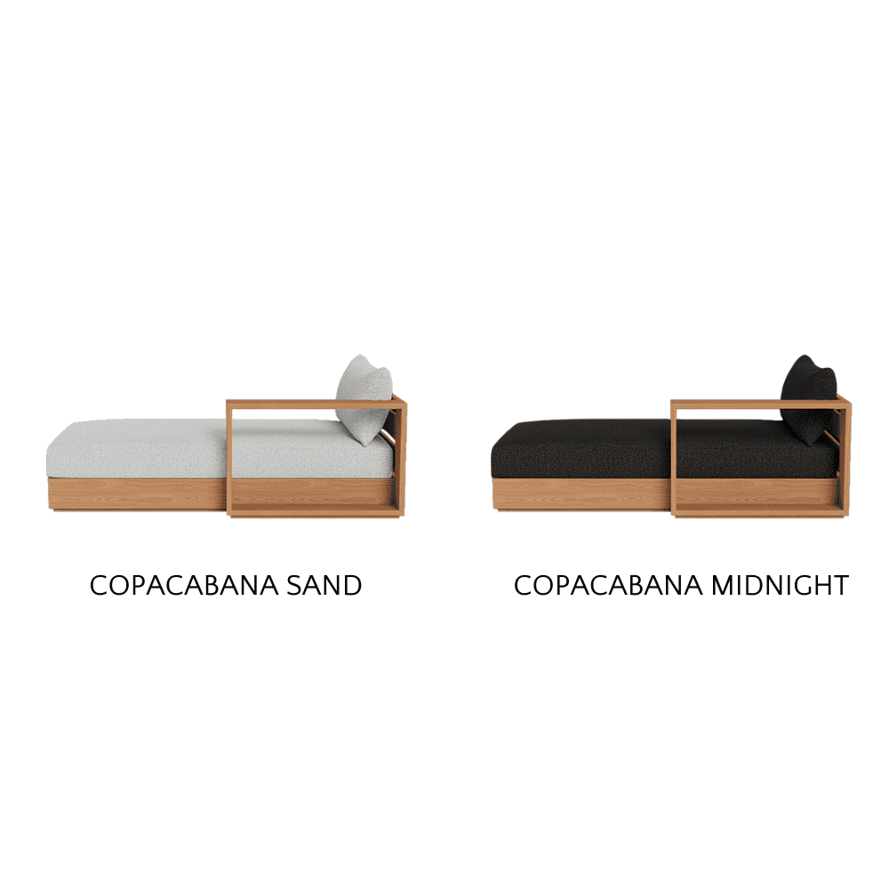 Introducing the Hayman Outdoor collection—a testament to simplicity, characterized by clean angles and contemporary flair. At the core of this collection lies the Hayman Outdoor Teak Chaise Left, a masterpiece crafted for immersive relaxation. Its expansive arms and sleek, low-profile silhouette beckon you to unwind, supported by a deep bench cushion available in a variety of neutral tones. Enhanced with a White Batyline sling suspension, this chaise ensures optimal comfort, all enveloped within a sturdy natural teak frame.