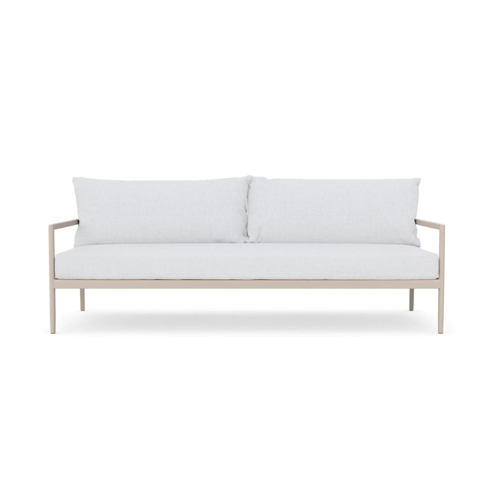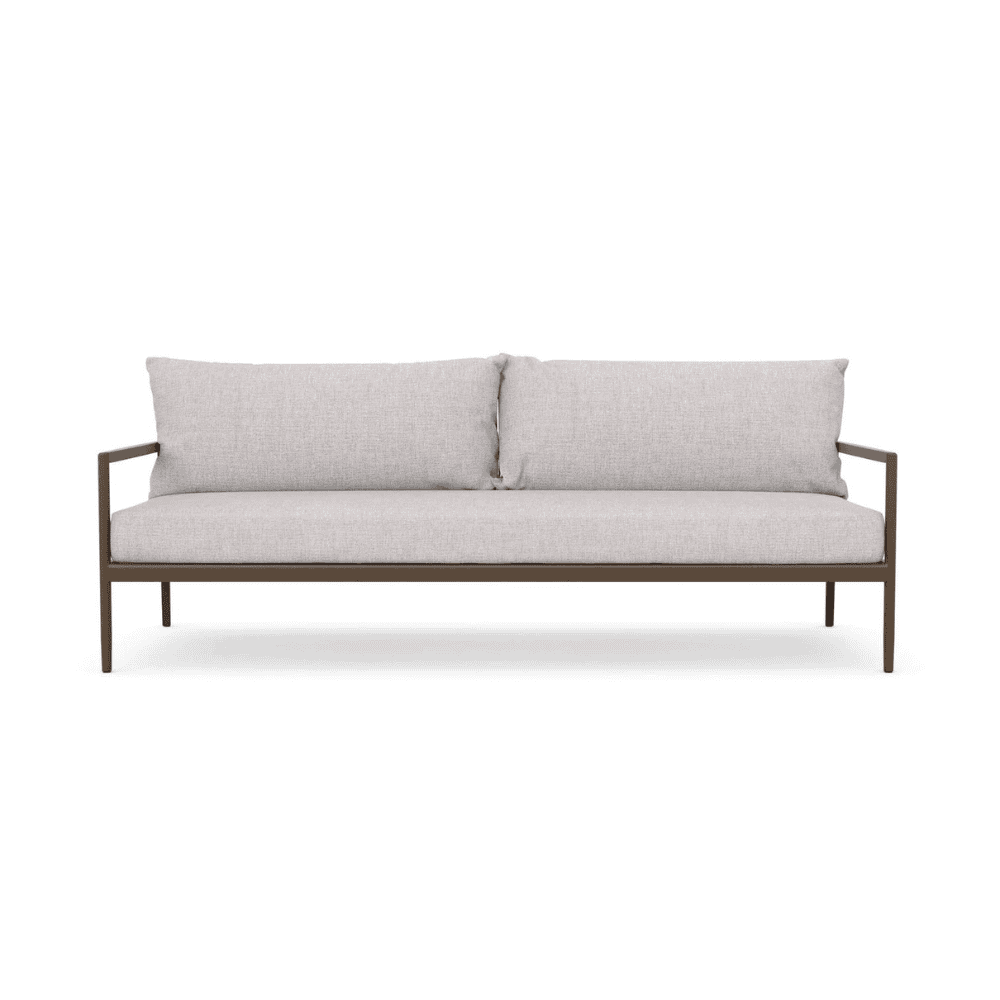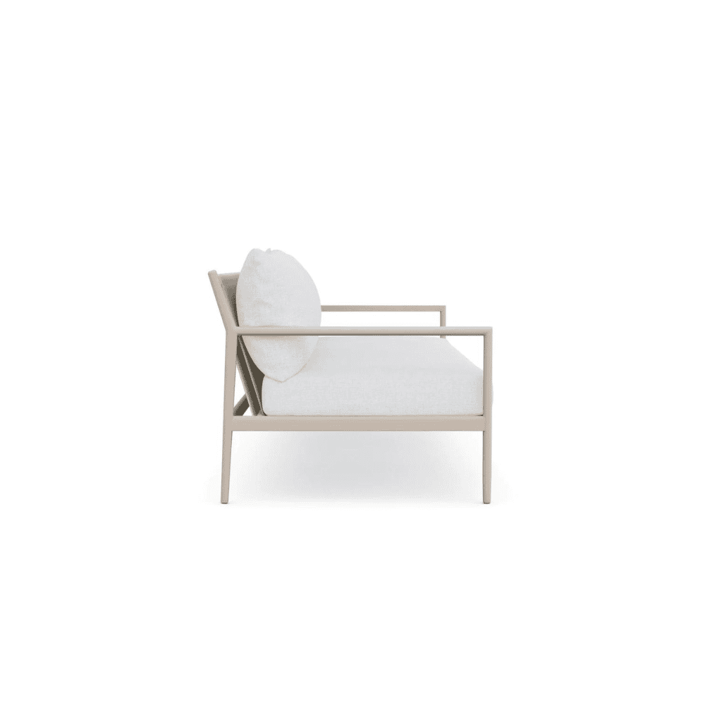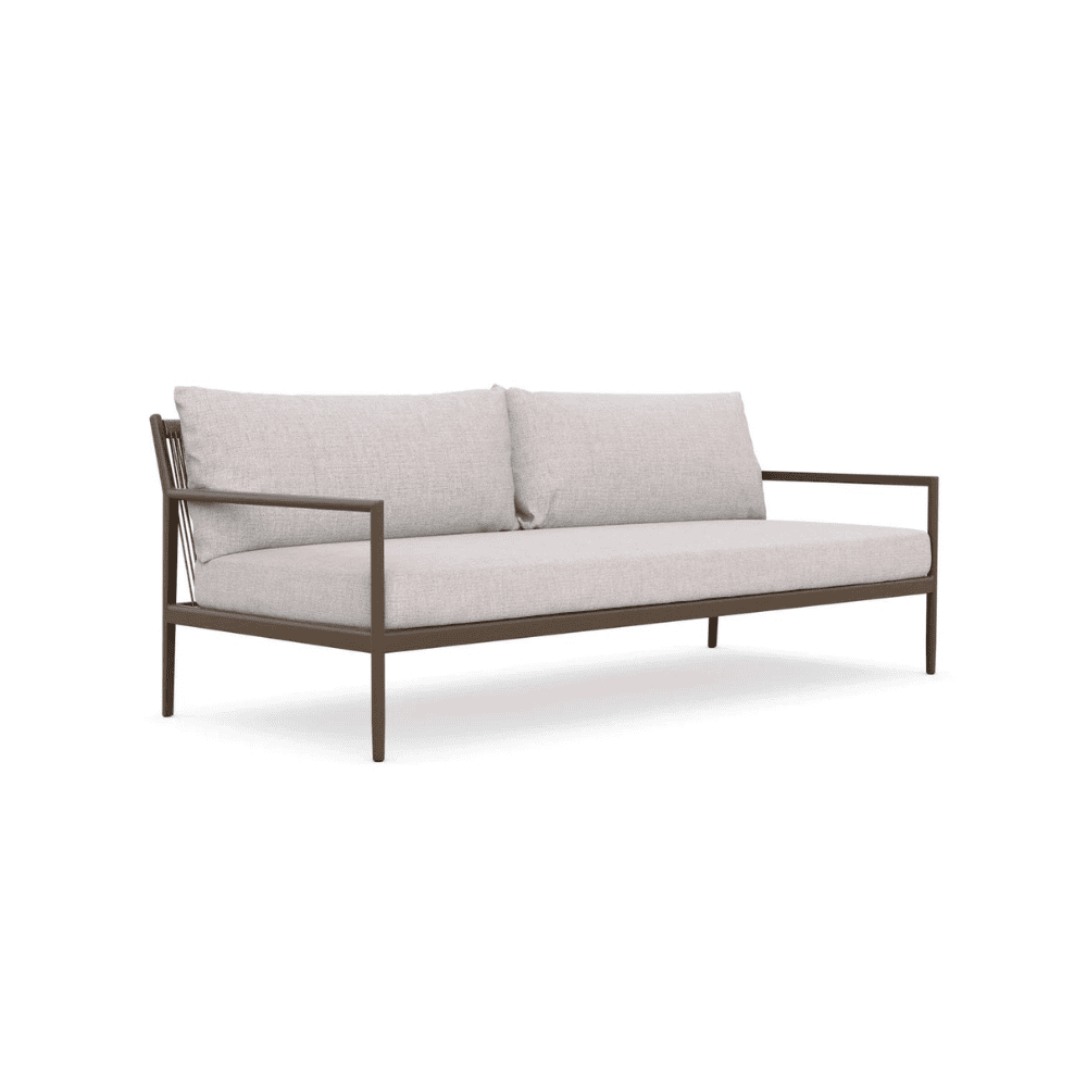 The Madeira Outdoor 3 Seat Sofa from Boxhill excites audiences with linear, breezy weaves of all-weather textelene rope, rigorously formulated to resist harsh weather and commercial spaces. An alluring, tubular frame is formed, welded, and polished by hand using lightweight, durable aluminum. The varied thickness and subtle differences of form create a cohesive, yet mesmerizing composition from every angle. The tasteful simplicity of intertwining textelene rope captivates with a linear system of support and backing, offering reliable and lasting comfort. High-density cushions, wrapped in delicately soft solution-dyed acrylic Solvita Performance Fabric, caters to deep-down comfort and combats severe conditions. Hassle-free materials allow you to sit back and rest easy in the sophistacated, mid-century modern Madeira Outdoor 3 Seat Sofa.