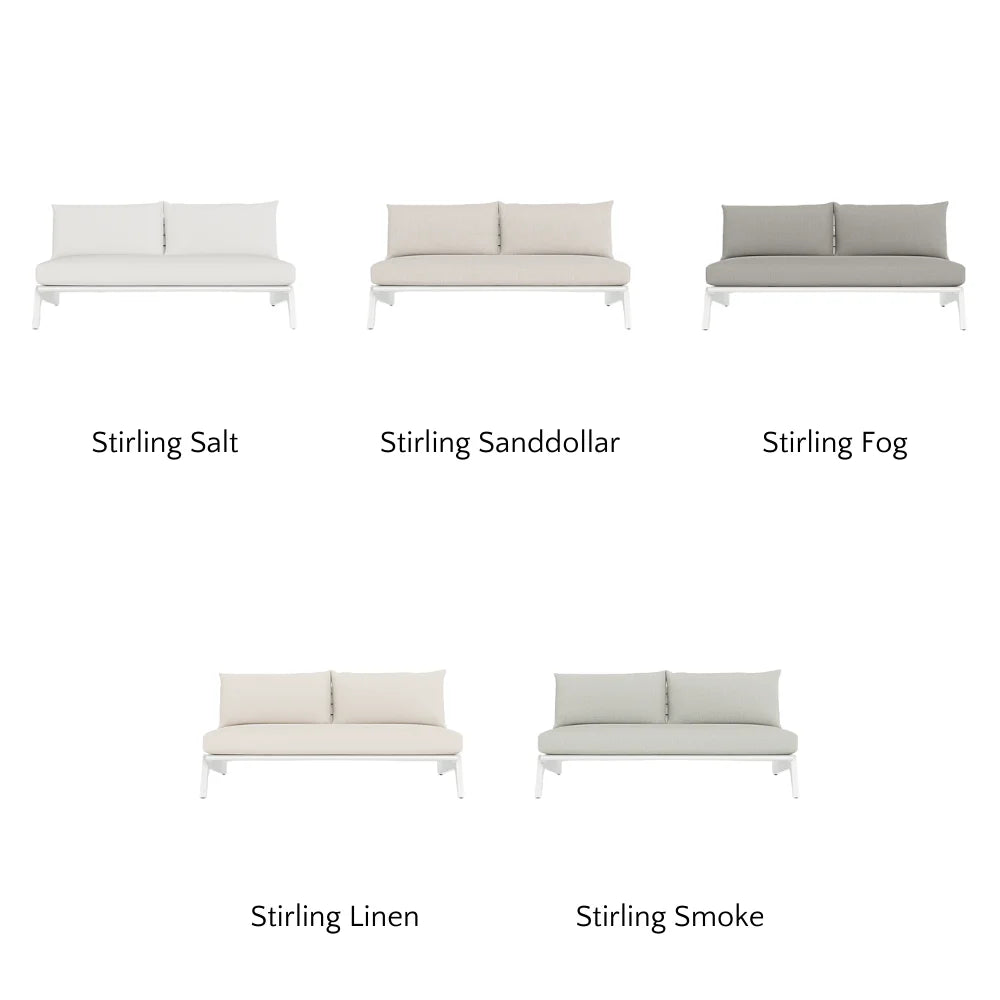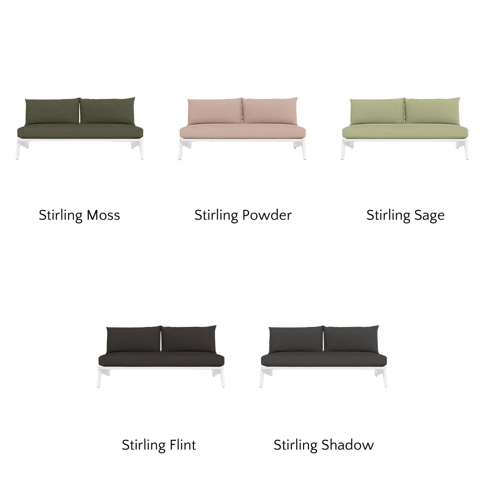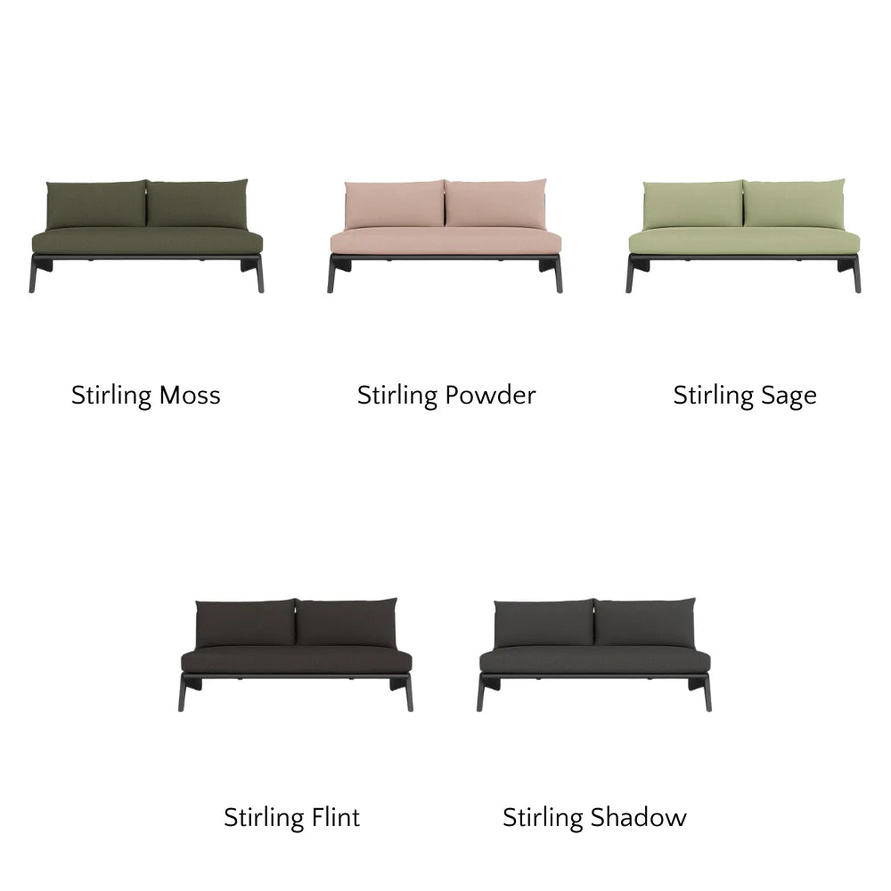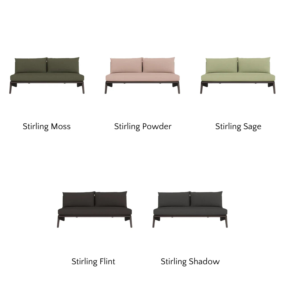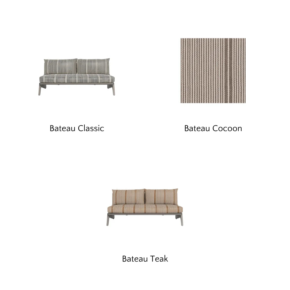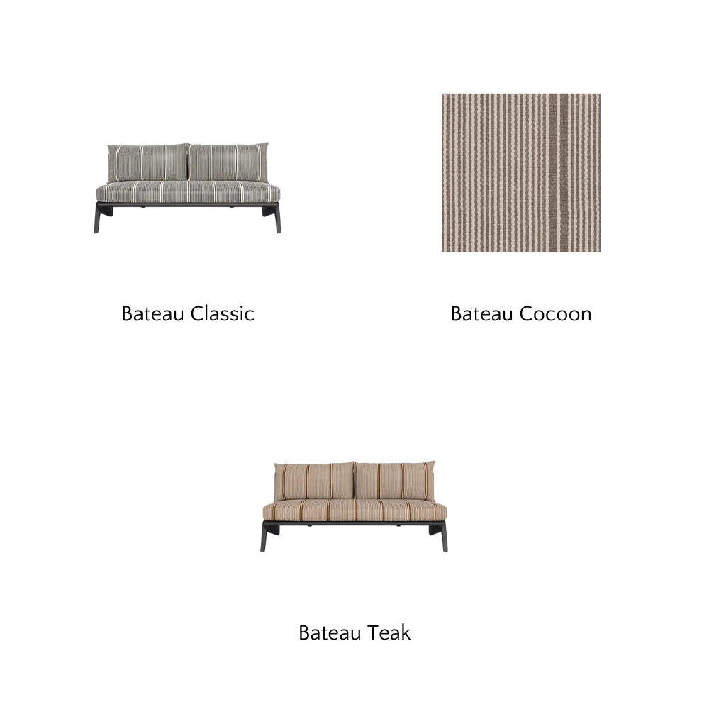A collaboration with decorated interior designer Martyn Lawrence Bullard, our MLB collection now in aluminum balances modern proportions with a striking juxtaposition of outdoor materials. The MLB 2 Seat Armless Sofa is a standout — enjoy a plush deep bench cushion supported by a slatted extruded aluminum frame featuring dynamic angled legs. From the side, a striking zig-zag shape adds intrigue. The smaller sofa option and a truly versatile statement piece, pair it with a Corner to extend it as a sectional or leave it as a stand-alone to let it shine.