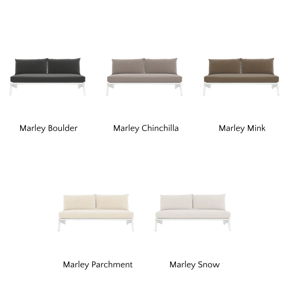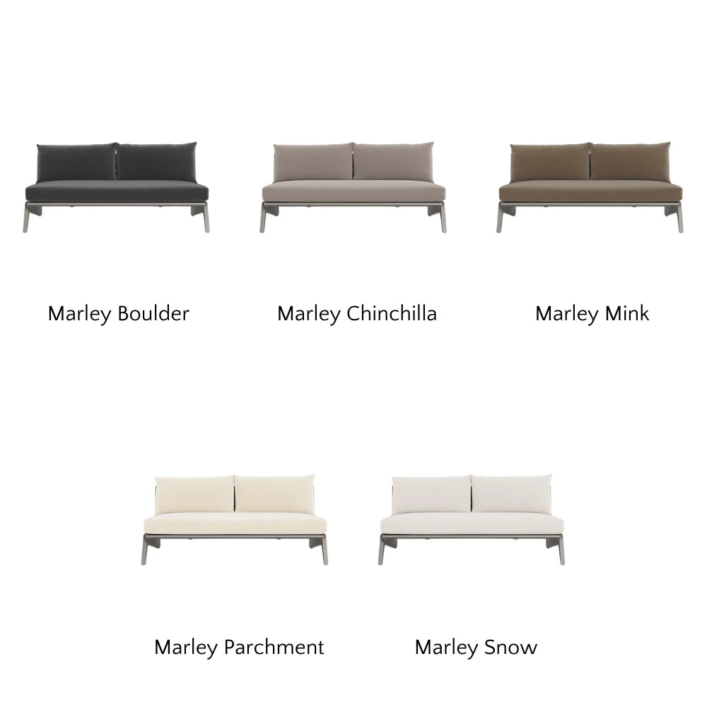 A collaboration with decorated interior designer Martyn Lawrence Bullard, our MLB collection now in aluminum balances modern proportions with a striking juxtaposition of outdoor materials. The MLB 2 Seat Armless Sofa is a standout — enjoy a plush deep bench cushion supported by a slatted extruded aluminum frame featuring dynamic. . . Show More