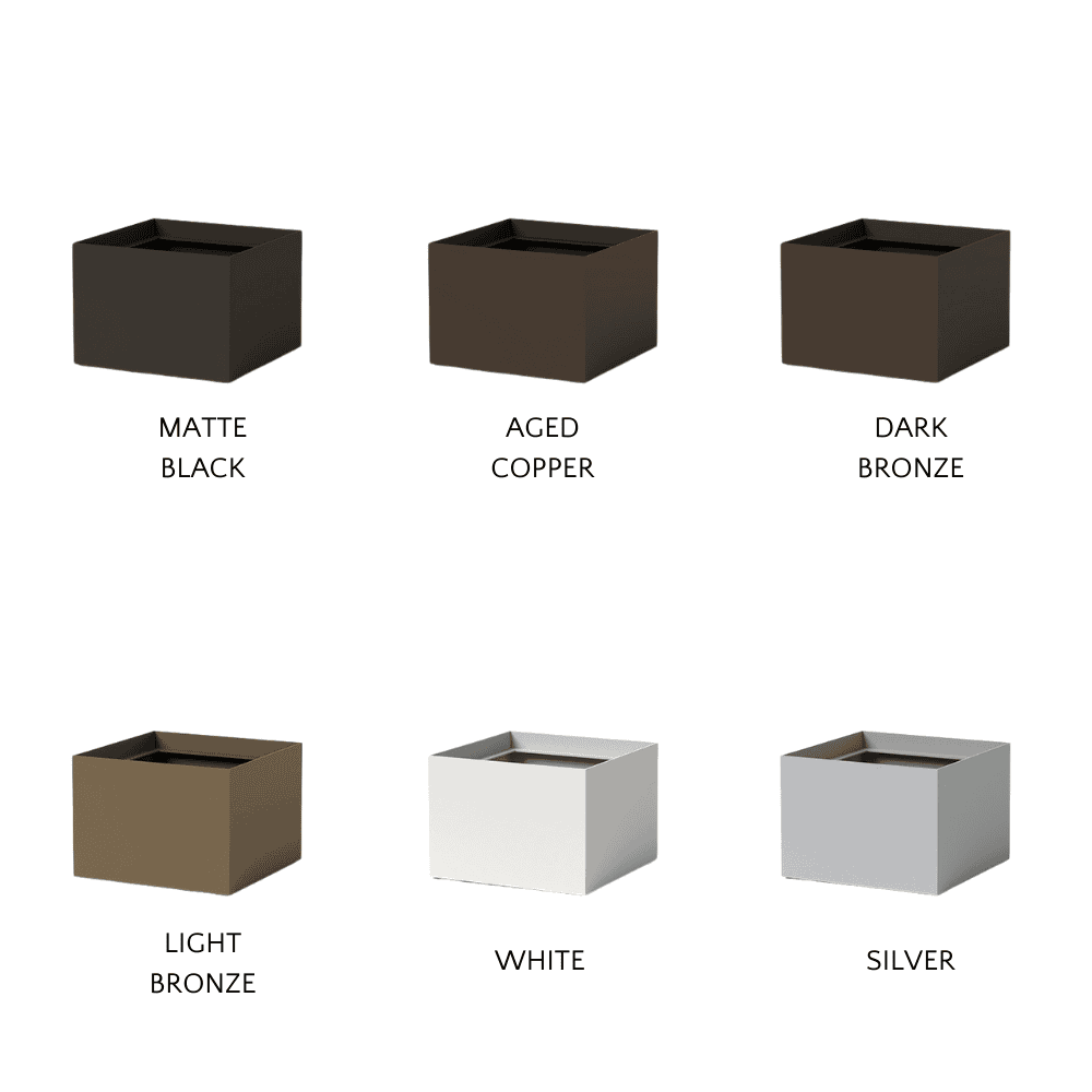 SHOPBOXHILL's Box Planter sleek design makes a wonderful contemporary container for your plants. Available in four sizes and ten colors, this versatile planter makes a beautiful stand-alone piece but we really love how they look in pairs of multiple sizes! Fun & functional features for this planter include: Drainage Fittings, Drip Trays & Irrigation Sleeves. Please contact support@shopboxhill.com to discuss these options and for a custom quote for your Perfect Planter!