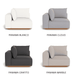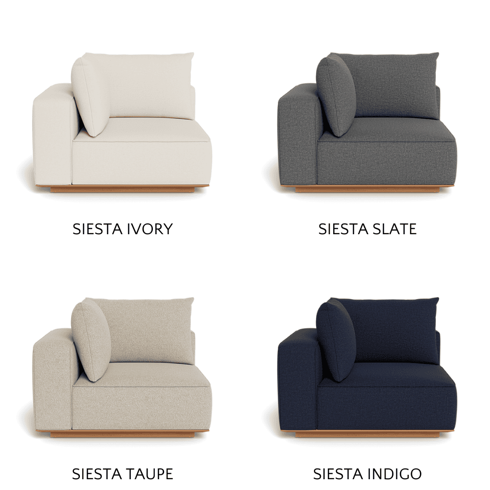 Skillfully crafted for outdoor environments, the Santorini 4pc Modular Outdoor Ottoman Sectional effortlessly blends comfort with versatility. Experience the luxury of sinking into its ample cushioning and savor the durability of its all-weather suspension system, complemented by charming accent pillows. Whether opting for an aluminum or teak plinth base, this modular outdoor sofas and sectionals seamlessly integrates into any current or future outdoor space, fulfilling your needs for outdoor sectional patio furniture with style and adaptability.