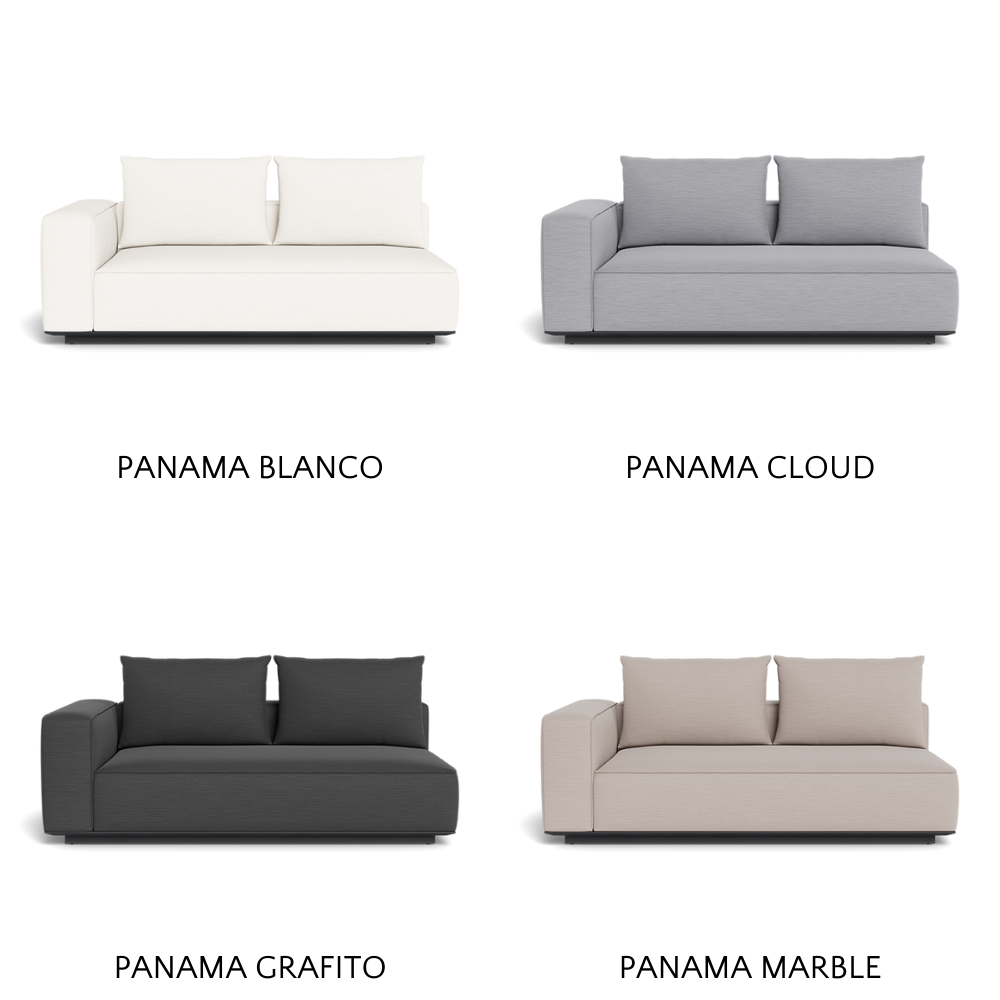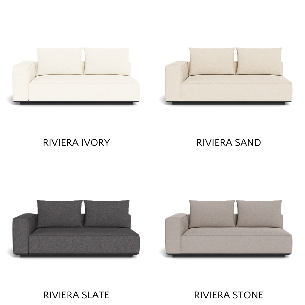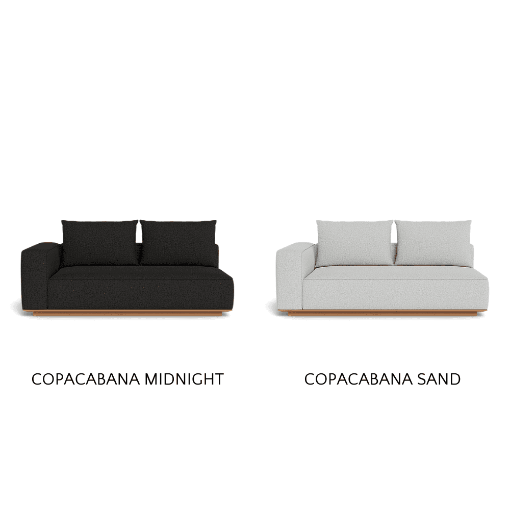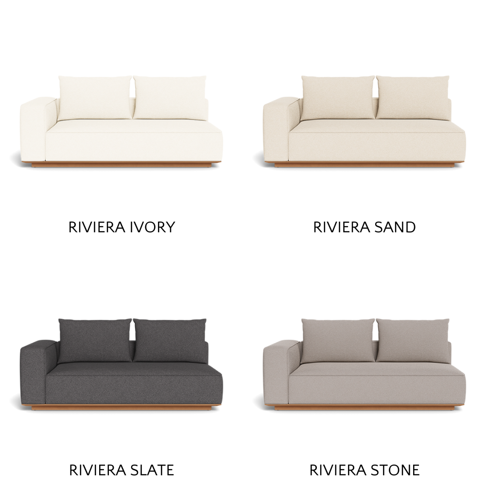 Crafted with expertise for outdoor settings, the Santorini Outdoor Left Sectional seamlessly combines comfort and versatility. Enjoy sinking into its generous cushioning and appreciate the reliability of its all-weather suspension system, enhanced by charming accent pillows. Whether opting for an aluminum or teak plinth base, this modular sofa effortlessly adjusts to any current or future outdoor space, making it an ideal choice for your outdoor sectional patio furniture needs, offering a perfect addition to your collection of outdoor sofas and sectionals.