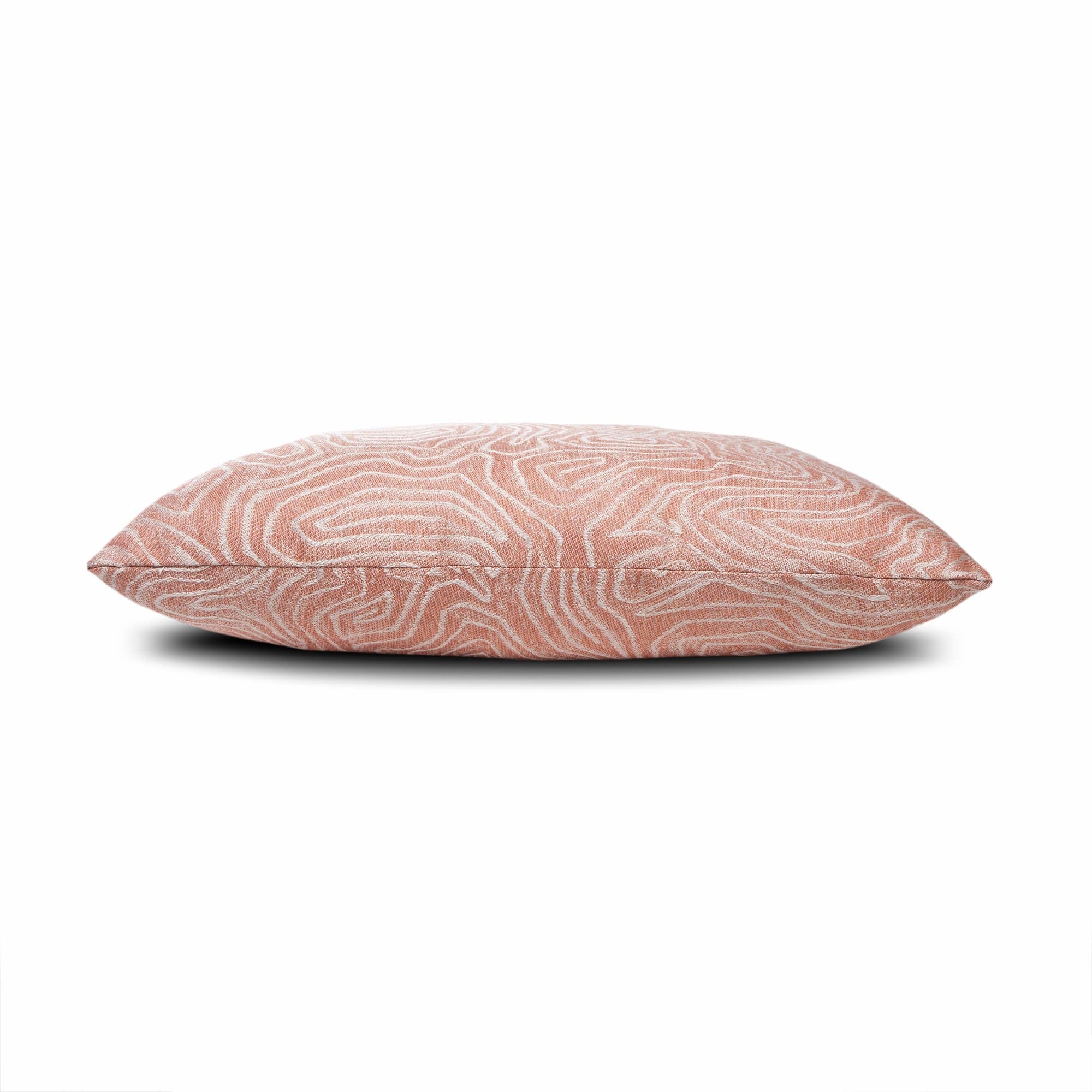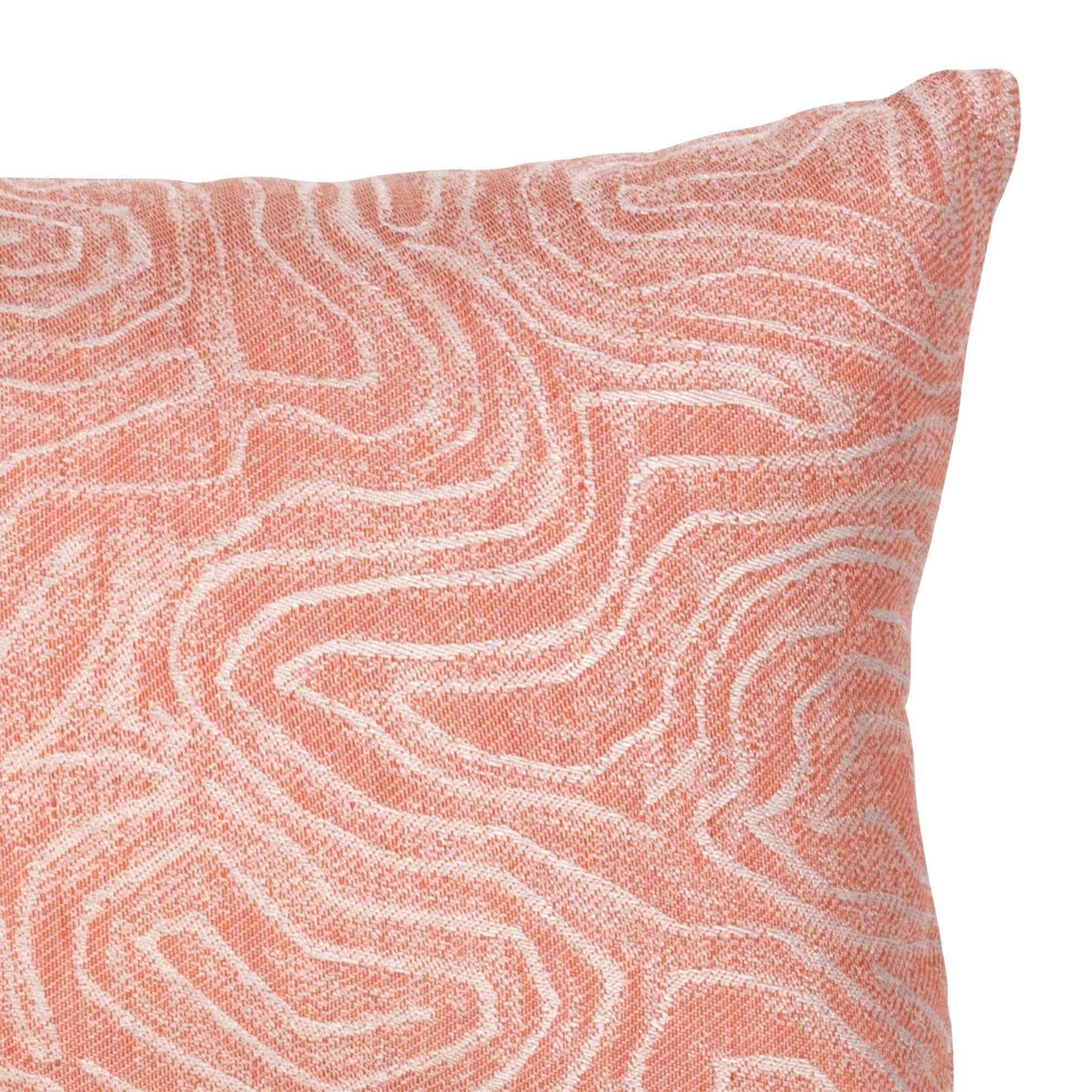 The Chari pillow features subtle distressed lines in a modern geometric motif. This elegant, abstract design in a fresh color palette is woven from 100% Sunbrella yarns for indoor and outdoor appeal.