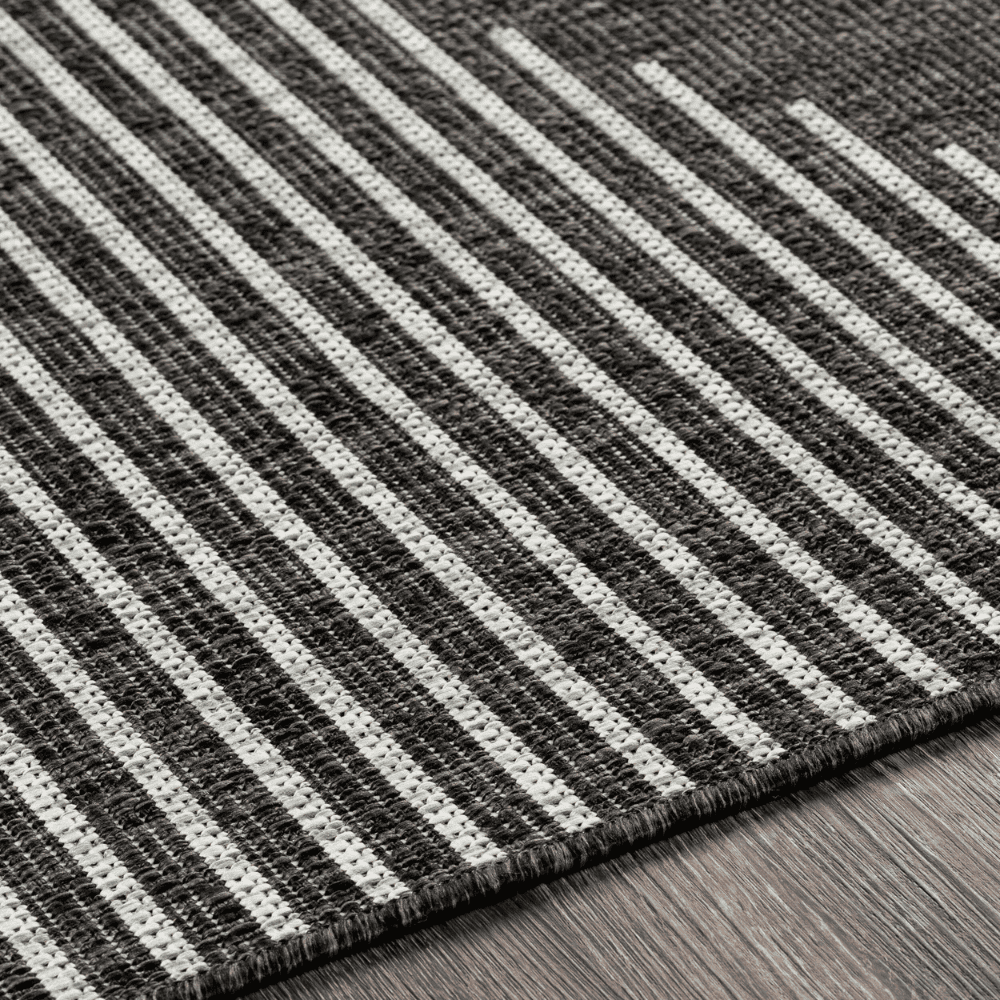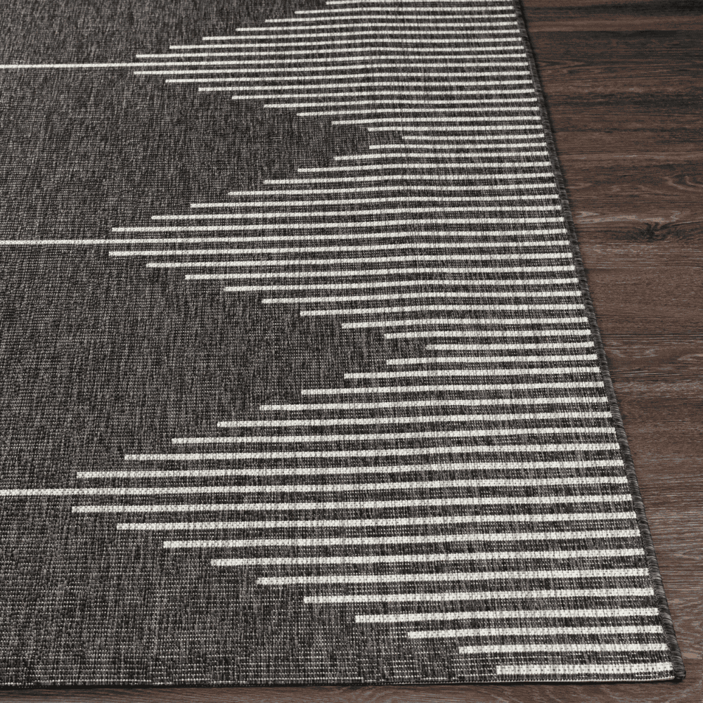 Eagean Machine Woven Outdoor Rug | Charcoal is meticulously crafted in Turkey from 100% polypropylene. Designed with a flat, no-pile surface, it offers an easy-to-maintain texture that's perfect for high-traffic areas.