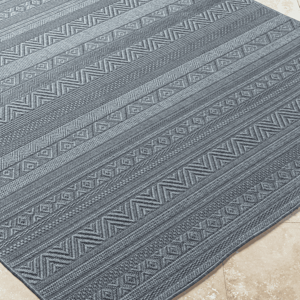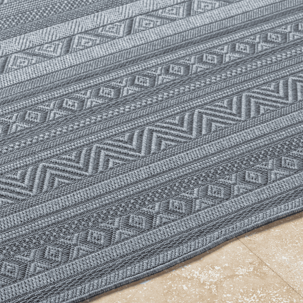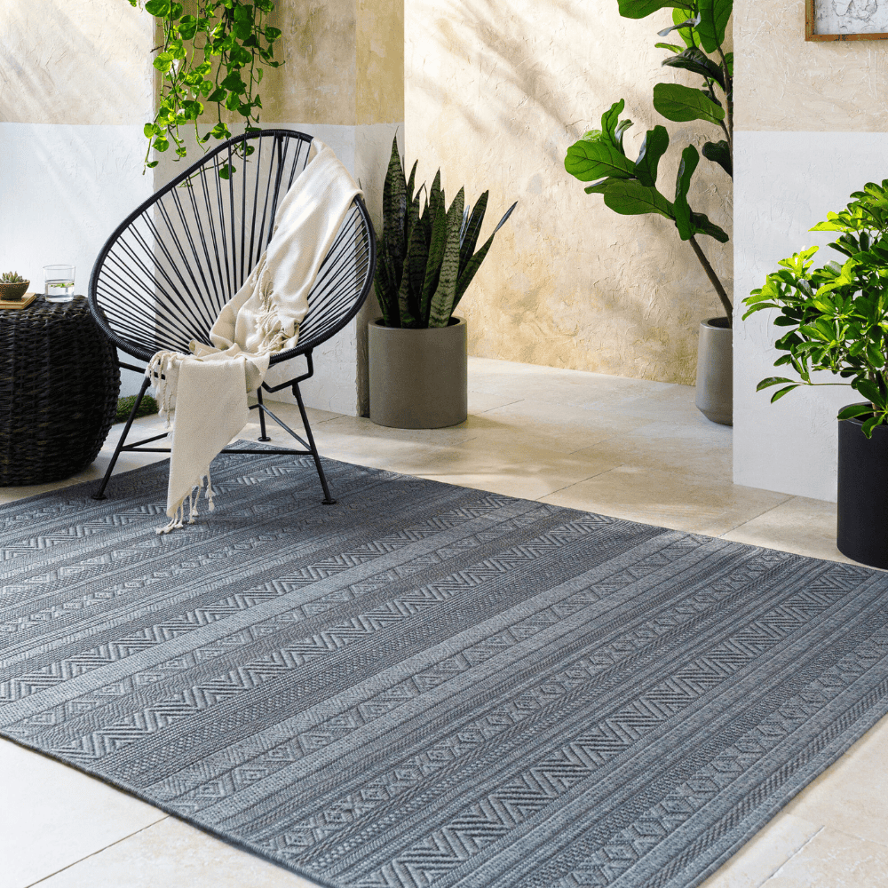 The Sandra Machine Woven Outdoor Rug in Charcoal Grey is a stylish, durable piece crafted with meticulous attention to detail. Made from 100% polypropylene, this rug is expertly machine-woven to withstand outdoor elements, combining resilience with refined design. Its flat, no-pile surface makes it a low-maintenance option, perfect for high-traffic areas, as dirt and debris are easily removed without compromising the integrity of the rug.