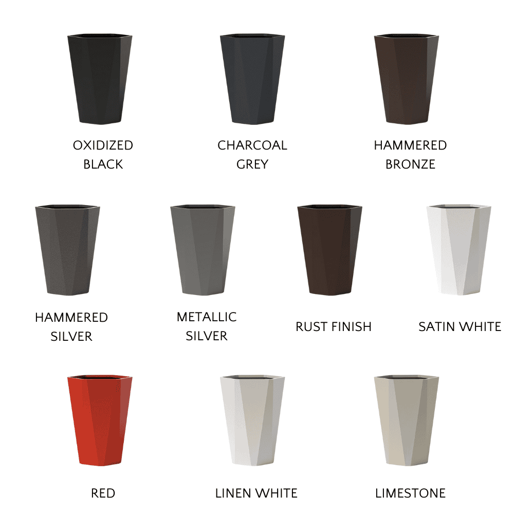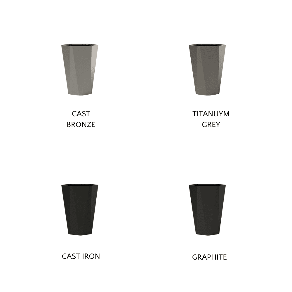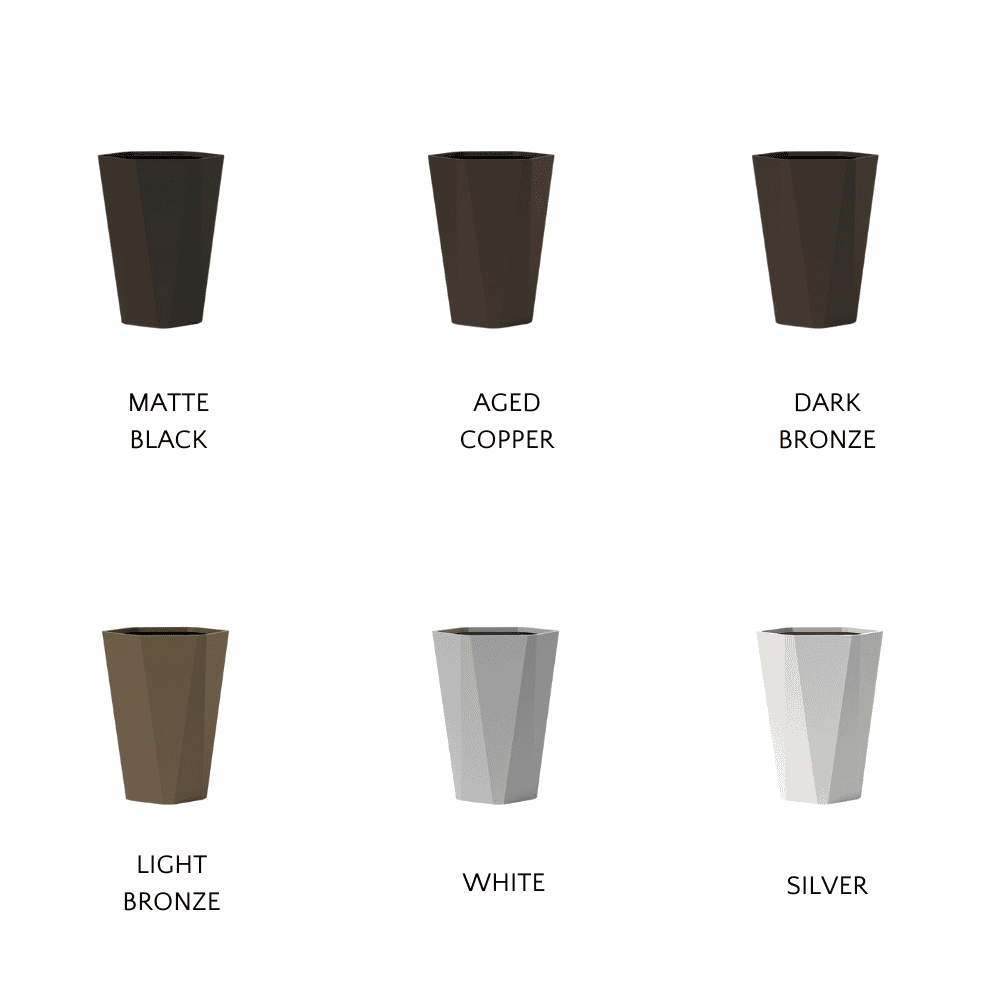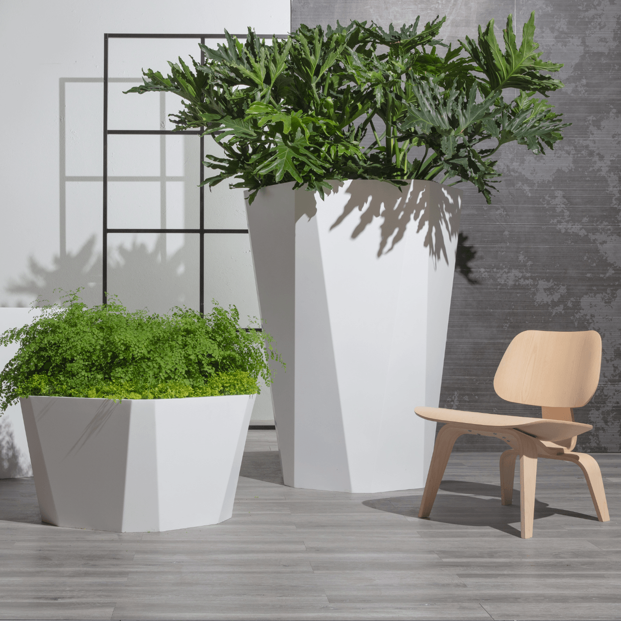 BOXHILL's Facet Planter sleek design makes a wonderful contemporary container for your plants. Available in three sizes and ten colors, this versatile planter makes a beautiful stand-alone piece but we really love how they look in pairs of multiple sizes! Fun & functional features for this planter include: Drainage Fittings, Drip Trays & Irrigation Sleeves. Please contact support@shopboxhill.com to discuss these options and for a custom quote for your Perfect Planter!