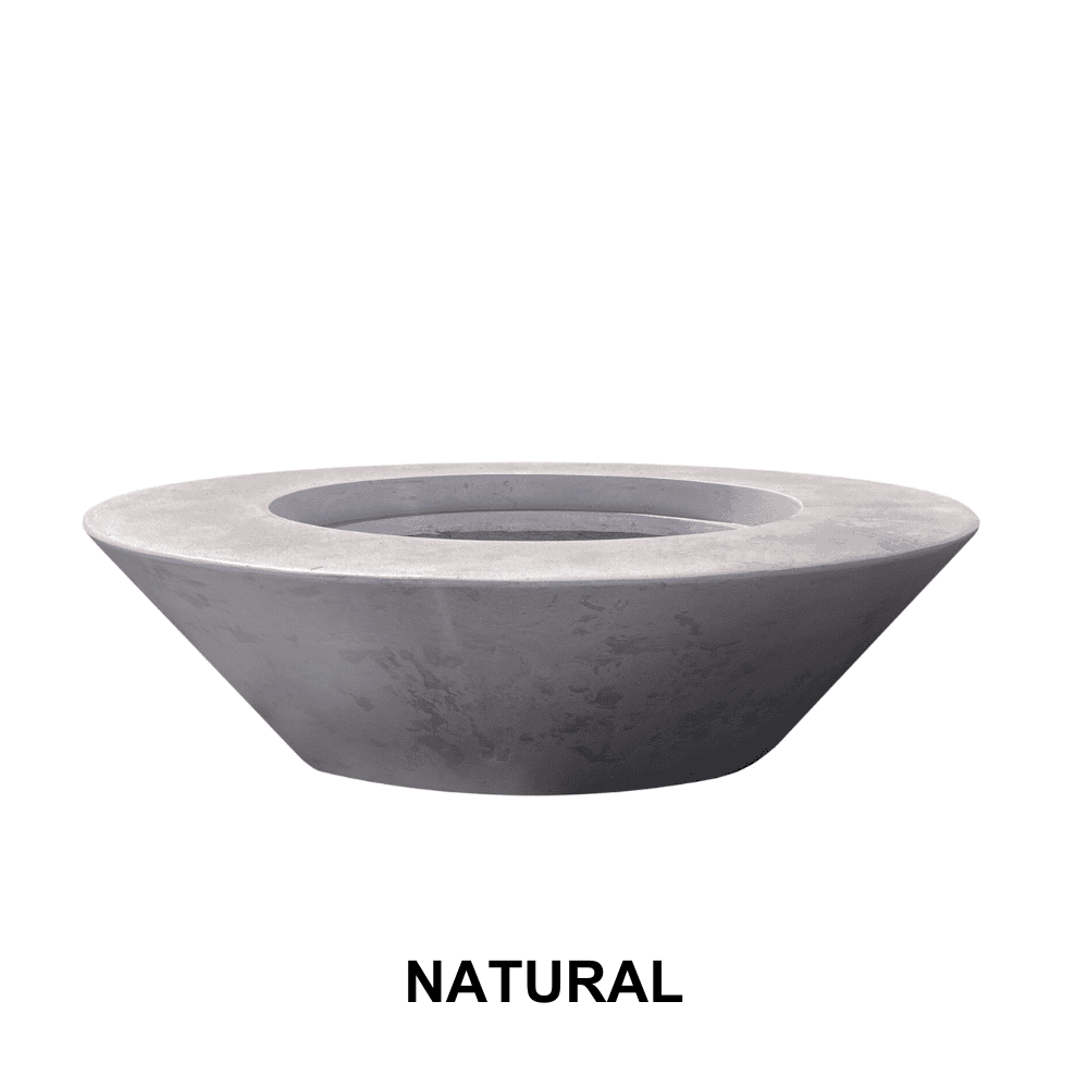 The tapered circular fire pit , named "Embarcadero" 60" inch, Outdoor Concrete Fire pit Bowl is a fiber-reinforced concrete material. Although not considered a defect, non-structural hairline cracks are possible as a result of shrinkage and the natural curing process. By ordering products from this collection, you accept the natural characteristics unique to each item and agree that no claims will be approved regarding these natural variations.