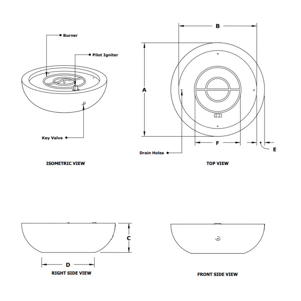 This fire bowl boasts a new burner design that effectively prevents water buildup in gas lines. It is constructed using Glass Fiber Reinforced Concrete, ensuring a sturdy, durable, and long-lasting bowl. What's more, it is proudly handmade and manufactured right here in the USA.