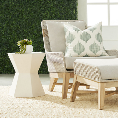 View full detailsThe Bento Ivory Concrete Outdoor Accent Table combines style and functionality in one piece. With its unique hexagon hour glass shape, this table a...