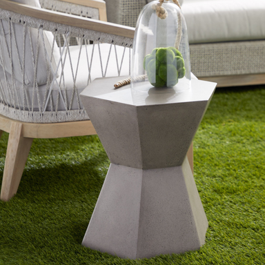 View full detailsThe Bento Slate Gray Concrete Outdoor Accent Table combines style and functionality in one piece. With its unique hexagon hour glass shape, this ta...