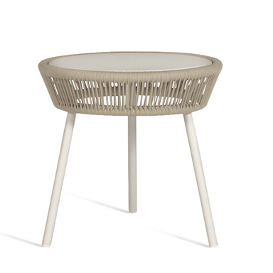 Enhance Rustic Outdoor Space The Safi side table in delicate weave is available in the colour Old lace. Materials Polyethylene Wicker Powder Coate...