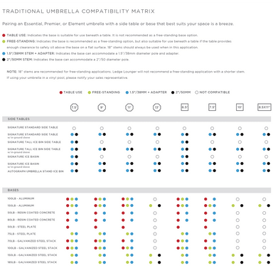 View full detailsLedge Lounger Aluminum Base Our Aluminum Umbrella Bases are both functional and sleek. Featuring a smooth, contemporary design, our Aluminum Bases ...