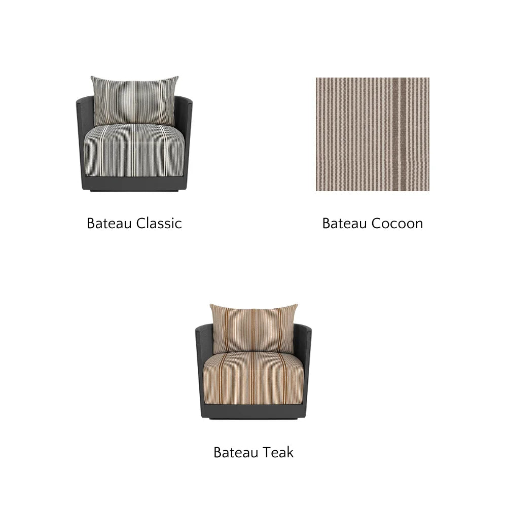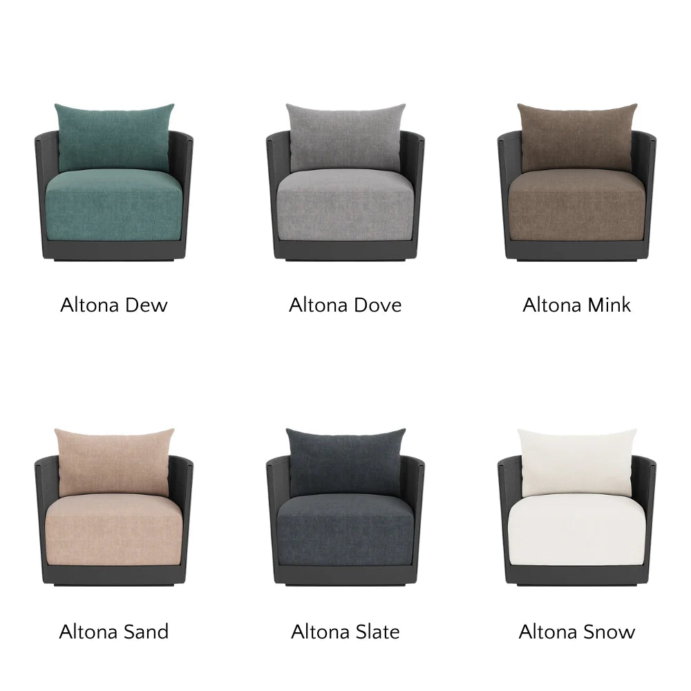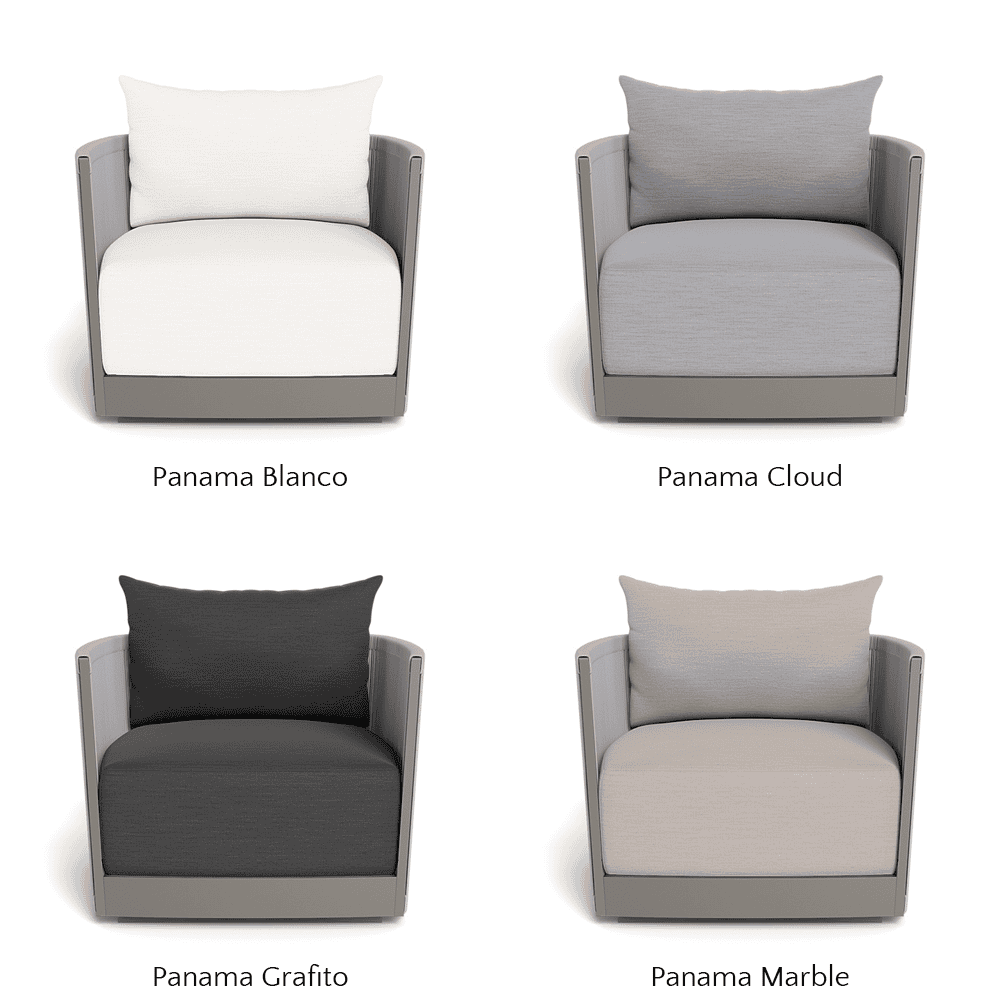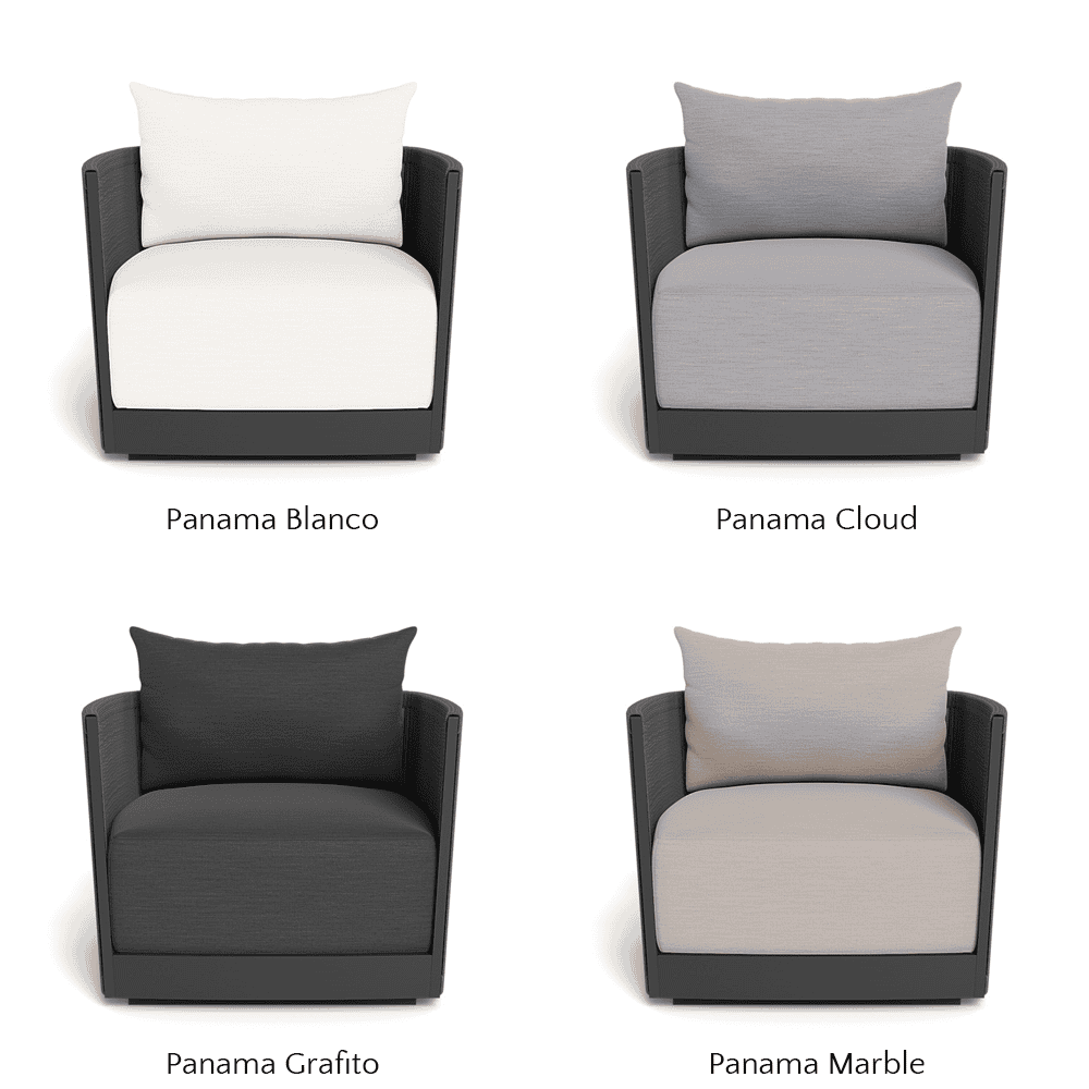This outdoor swivel chair’s structure begins with a handcrafted extruded aluminum frame, engineered in our workshop for long-lasting stability and corrosion resistance. Each frame receives a premium AkzoNobel Interpon architectural-grade powder coat, giving it exceptional weather durability against UV exposure, humidity, and salt air—making it ideal for harsh climates and seaside installations.