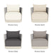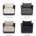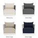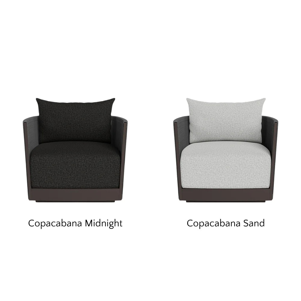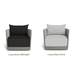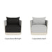 Comfort is elevated with a hinged floating cushion design, a visual signature of the Antigua series. The generously cushioned seat appears to hover above the plinth base, creating a modern, weightless aesthetic. The cushion is crafted with quick-dry flow-through foam, wrapped in Dacron for sink-in softness while ensuring fast drying after rain. Upholstery is resistant to mildew, staining, and fading.
