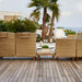 The Arch Outdoor Coffee Table w/ Teak Table Top boasts a solid teak base, providing both durability and a natural touch of sophistication. Its sleek teak tabletop features linear lines for a contemporary aesthetic, accentuating the timeless allure of the piece. The inherent warmth of teakwood exudes charm, making this outdoors coffee table inviting and visually captivating.