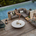 Designed to seamlessly complement other modular sofa elements from the Arch series, the Arch Outdoor Coffee Table w/ Teak Table Top offers the flexibility to customize your outdoor space according to your preferences. Its adaptable design effortlessly integrates into existing outdoor furniture arrangements or stands alone as a focal point, adding versatility to your patio or garden.