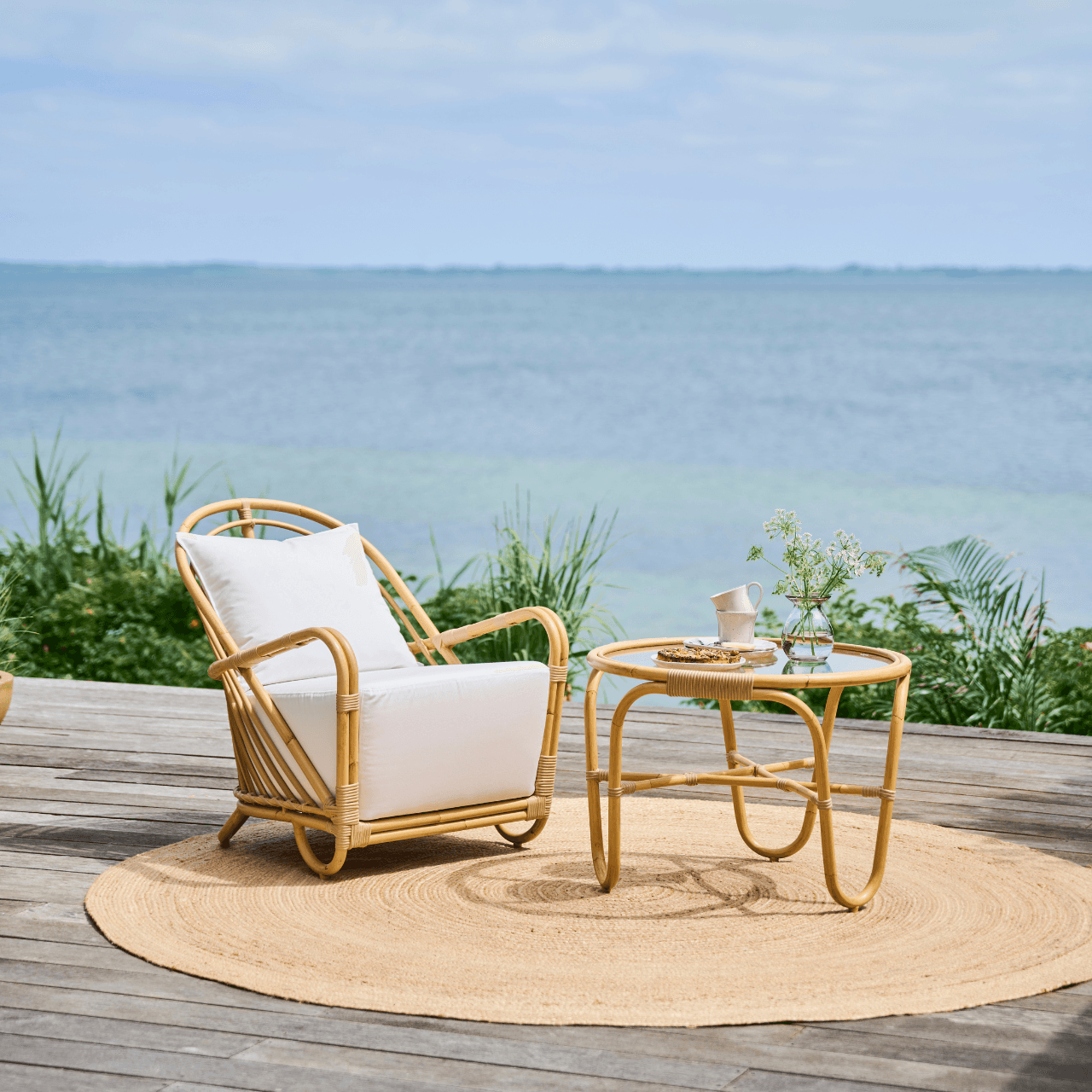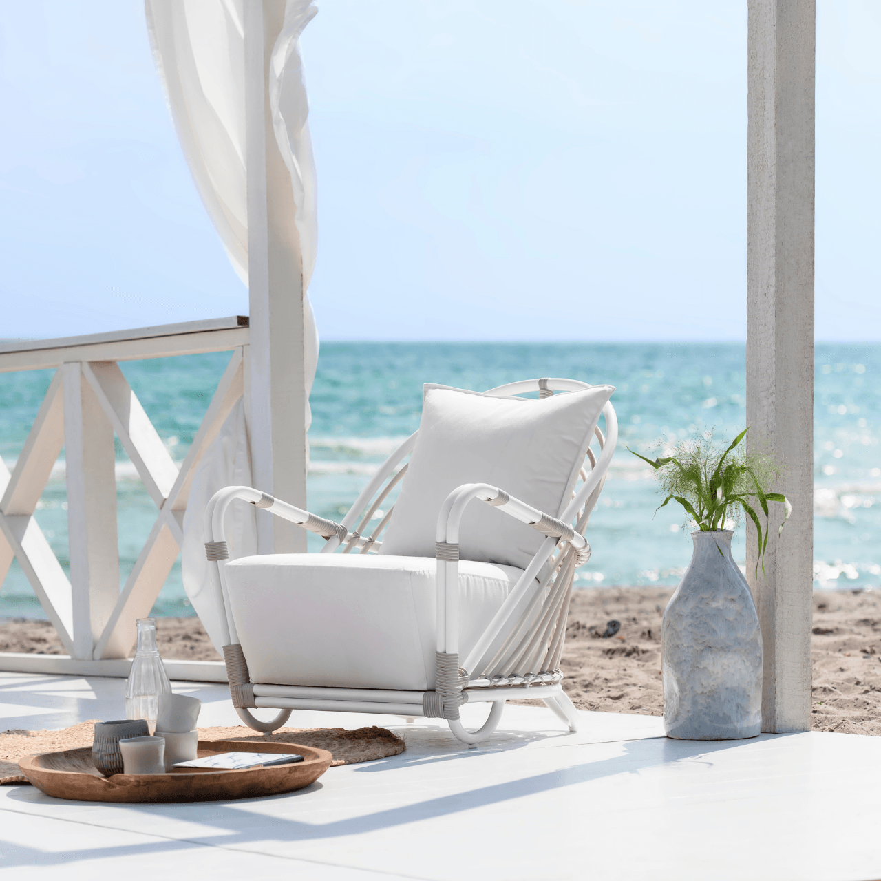 - AluRattan - a powder-coated aluminum bent to mimic the curves of natural rattan. The powder coating ensures a surface resistant to knocks and scratches. The material is well-suited to be left outside all year long and is easy to clean.