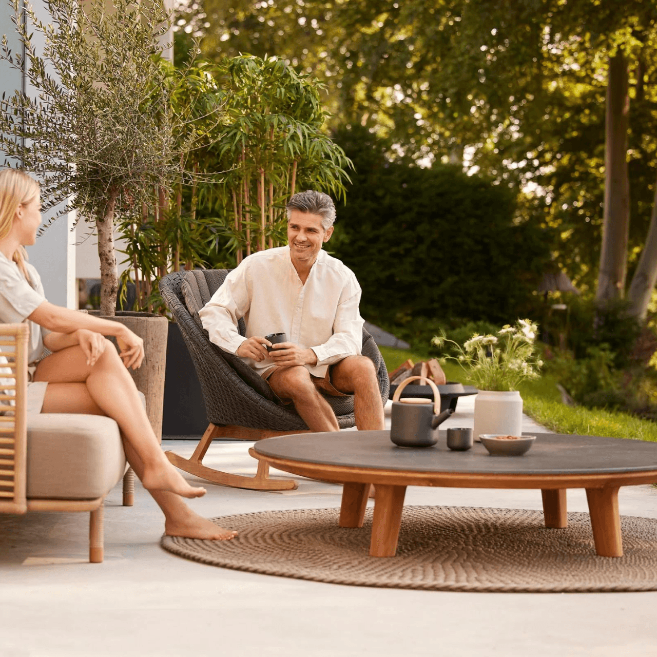 Aspect offers an outdoors coffee table of exceptional quality, meticulously crafted from durable materials, forming part of Aspect's collection of tables tailored with sophisticated design elements for your inviting outdoor lounge area. Seamlessly blending the cozy radiance of teak with the sleek solidity of ceramic, this unique combination achieves an elegant and exclusive aesthetic. Featuring a teak frame and a stylish ceramic tabletop, this outdoors coffee table not only exudes charm but also ensures practicality. For maintenance, we recommend utilizing BOXHILL Teak Care products to uphold the original teak hue and preserve the integrity of the fine teak wood. Explore our diverse selection, ranging from small to large outdoor coffee tables, including distinctive options like concrete, cool, and white outdoor coffee tables, to suit various outdoor settings and preferences.