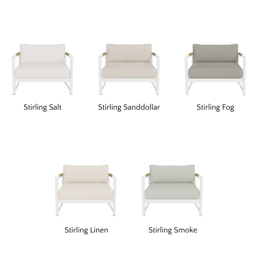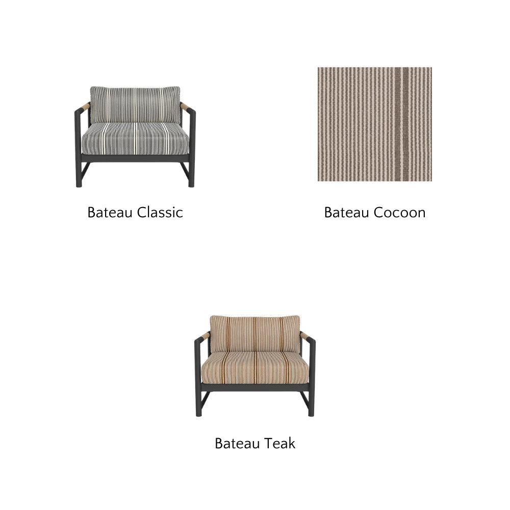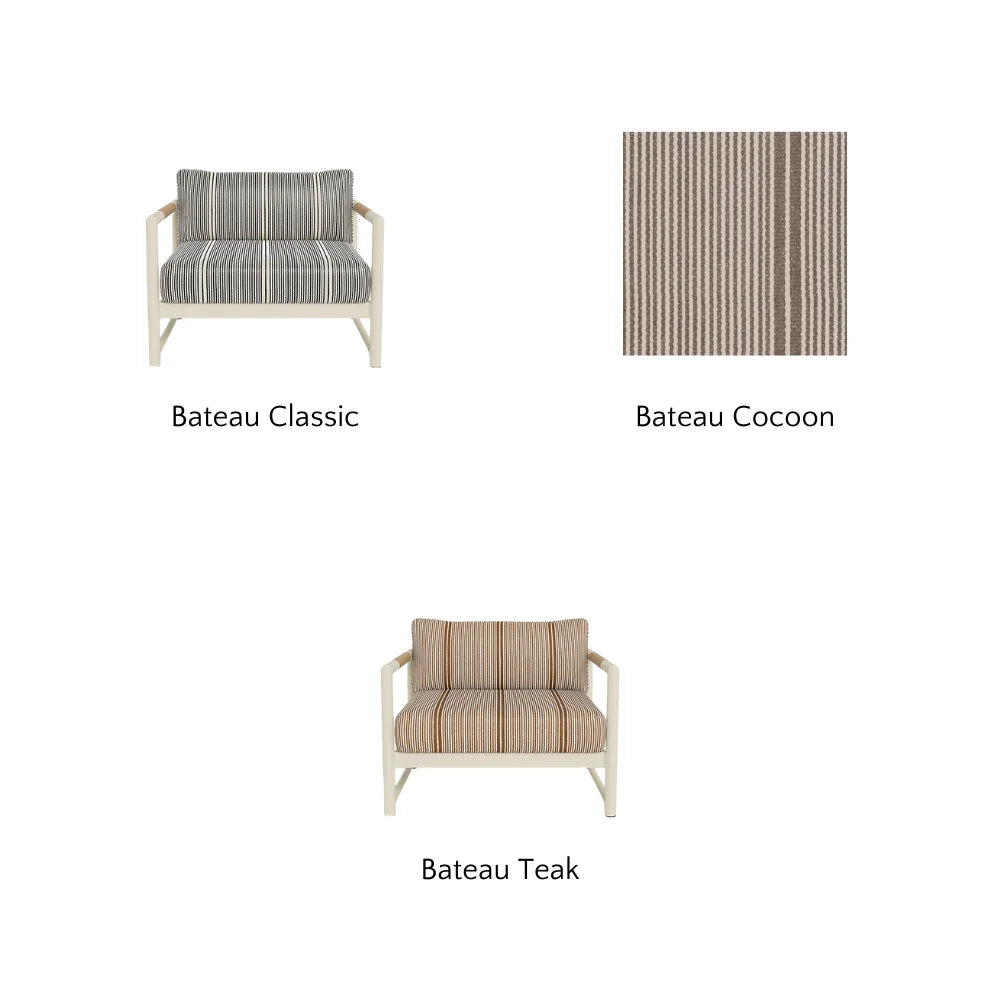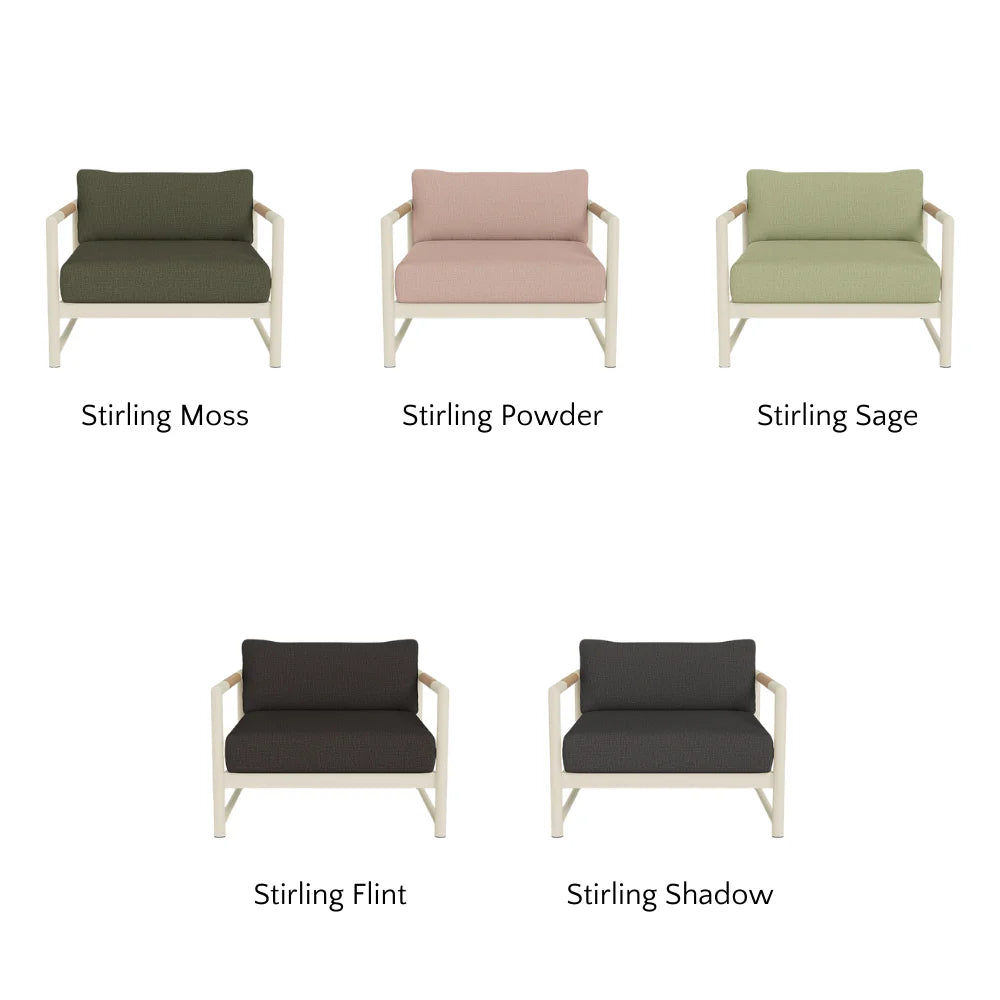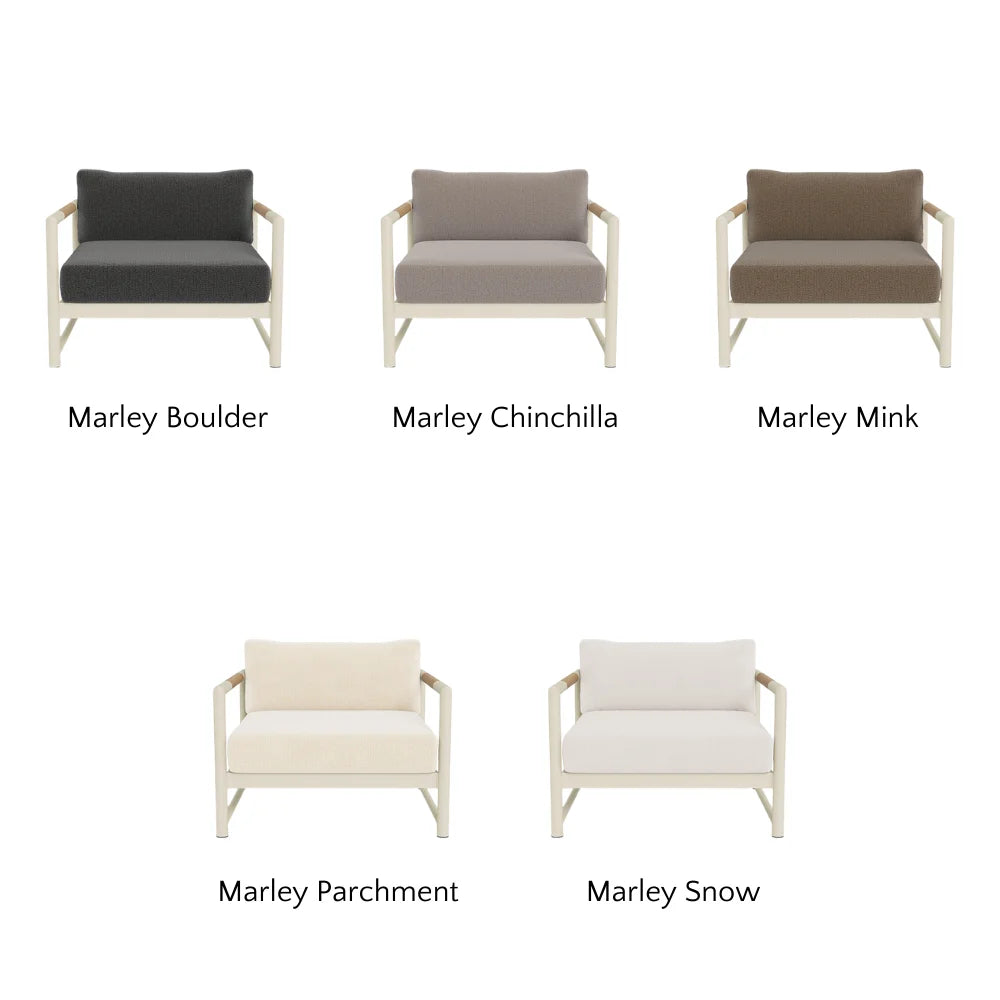 Sourced from Italy, Riviera is a fully outdoor performance fabric with a knubby texture similar to luxe boucle or terry cloth. Despite its soft, indoor-like feel, it’s made from 100% polypropylene, making it resistant to sun, moisture, sweat, mildew, and stains. Available in a range of neutral tones, Riviera adds refined, textured elegance to cushions and sofas. It comes from the Mario Sirtori line, an Italian company known for luxury, contract-quality fabrics since 1955.