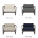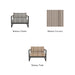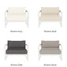 Clean the powder-coated aluminum frame and slatted areas with mild soap and a soft cloth. Rinse frequently in coastal locations to remove salt deposits. Avoid abrasive, solvent-based, or stainless steel cleaners. Clean cushions by brushing off debris and spot-cleaning with mild soap or fabric cleaner. Always allow cushions to dry completely before placing back on the frame.