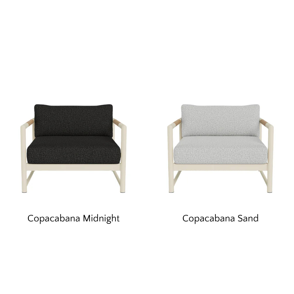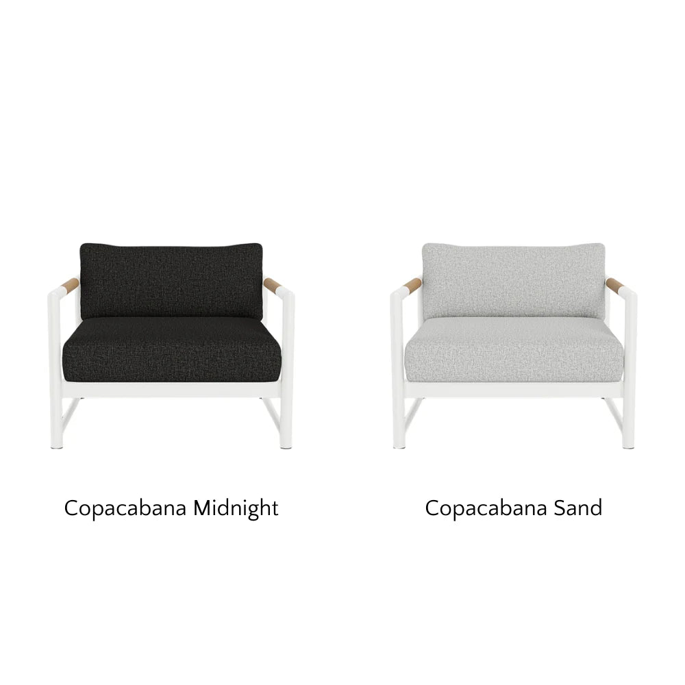 Copacabana is a 100% Olefin fabric milled in Indonesia, offering exceptional weather resistance, faster drying, and greater mold resistance than polyester. Sourced from Sunproof by Ateja, it’s made from fully recyclable, eco-friendly materials and pairs beautifully with our sustainably sourced Indonesian teak furniture.