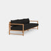 The frame is built from sustainably sourced solid Indonesian teak. Teak is selected for its inherent resistance to moisture, warping, decay, and surface degradation in outdoor environments. The structure incorporates cylindrical teak elements and concealed teak slatting to support the seating area while maintaining ventilation beneath the cushion.