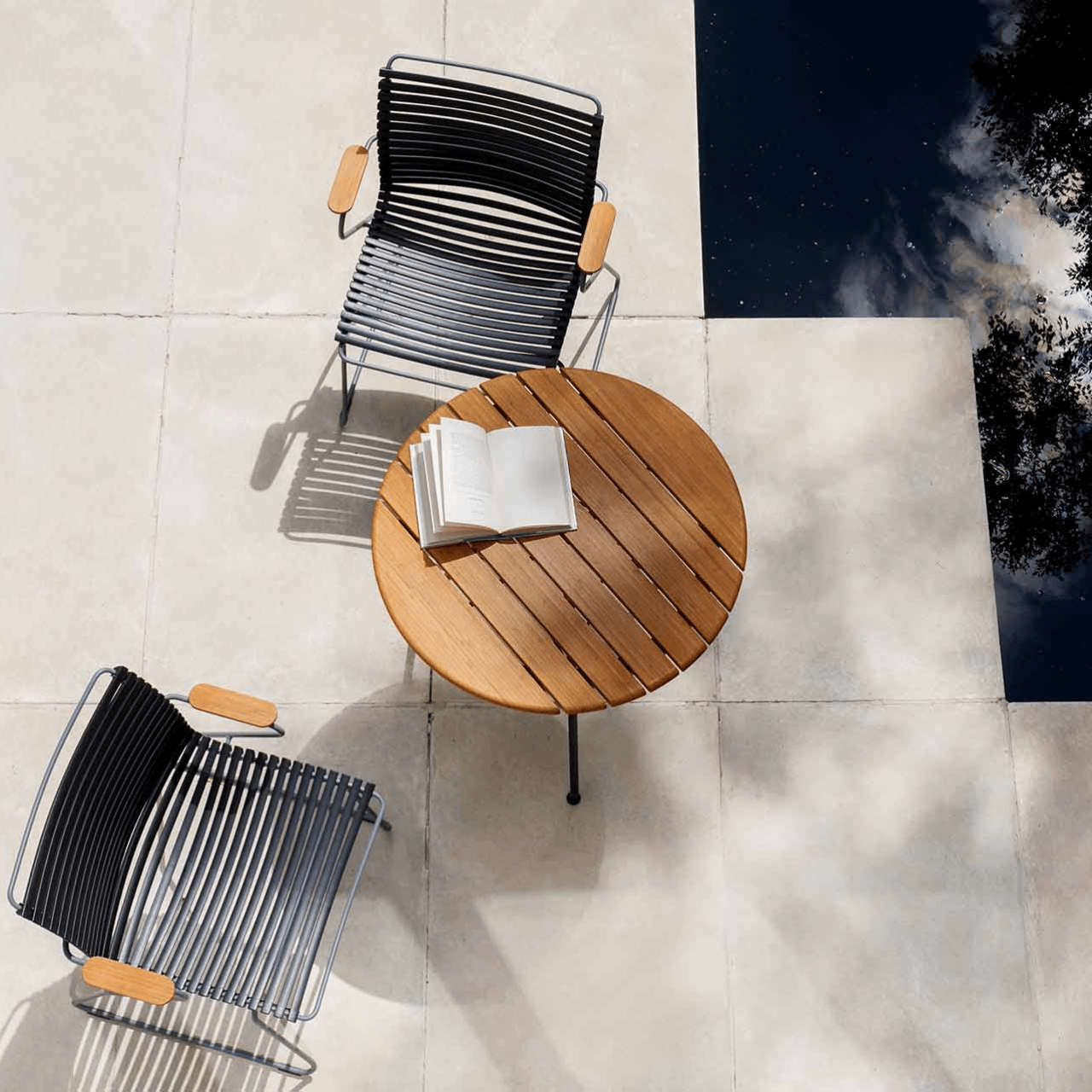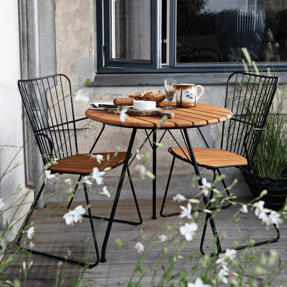 Maximize your outdoor space with the CIRCUM Outdoor Cafe Table from Boxhill. Crafted with bamboo and powder coated black steel, this coffee table is both stylish and durable. Perfect for smaller patios or balconies, this table creates a cozy setting for coffee or dining.