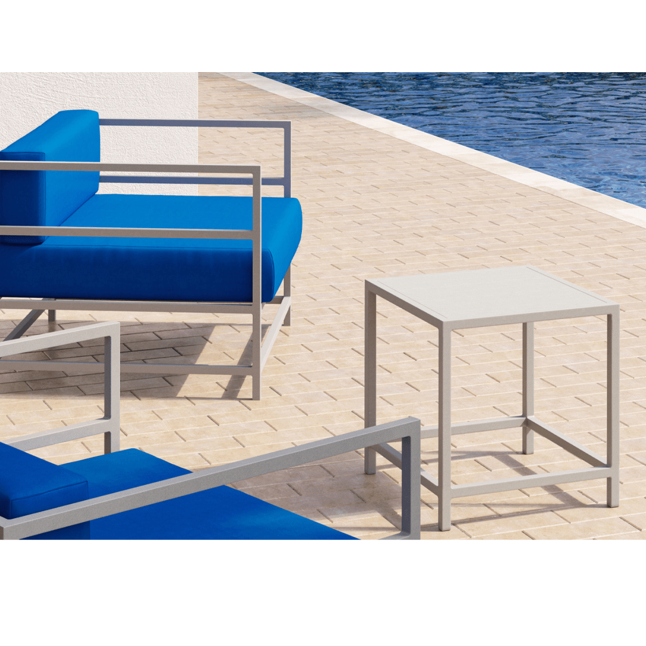 The poolside Delano Outdoor Collection is a slounge set made of aluminum that blends cost, comfort, and practicality. It is also long-lasting and easy to maintain.