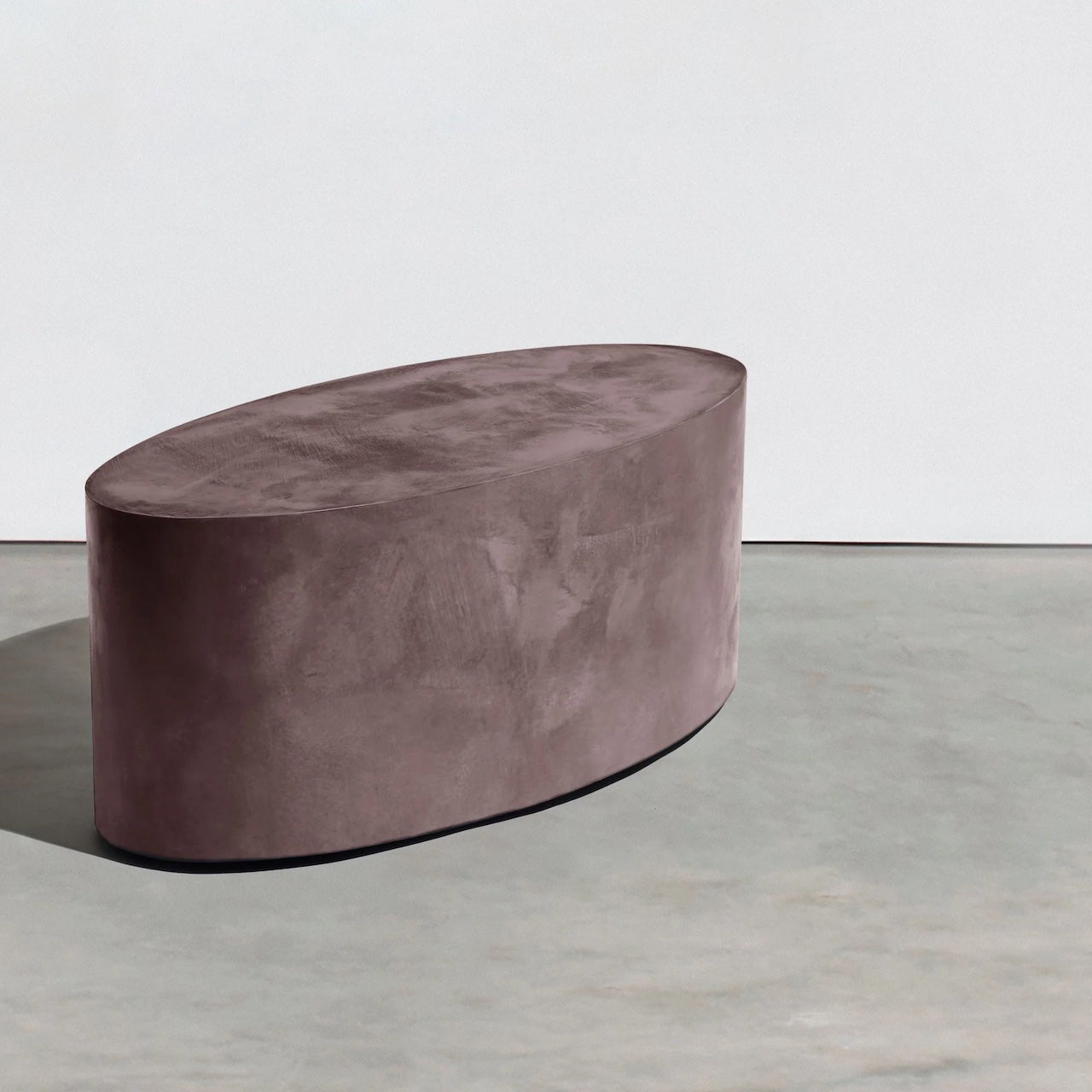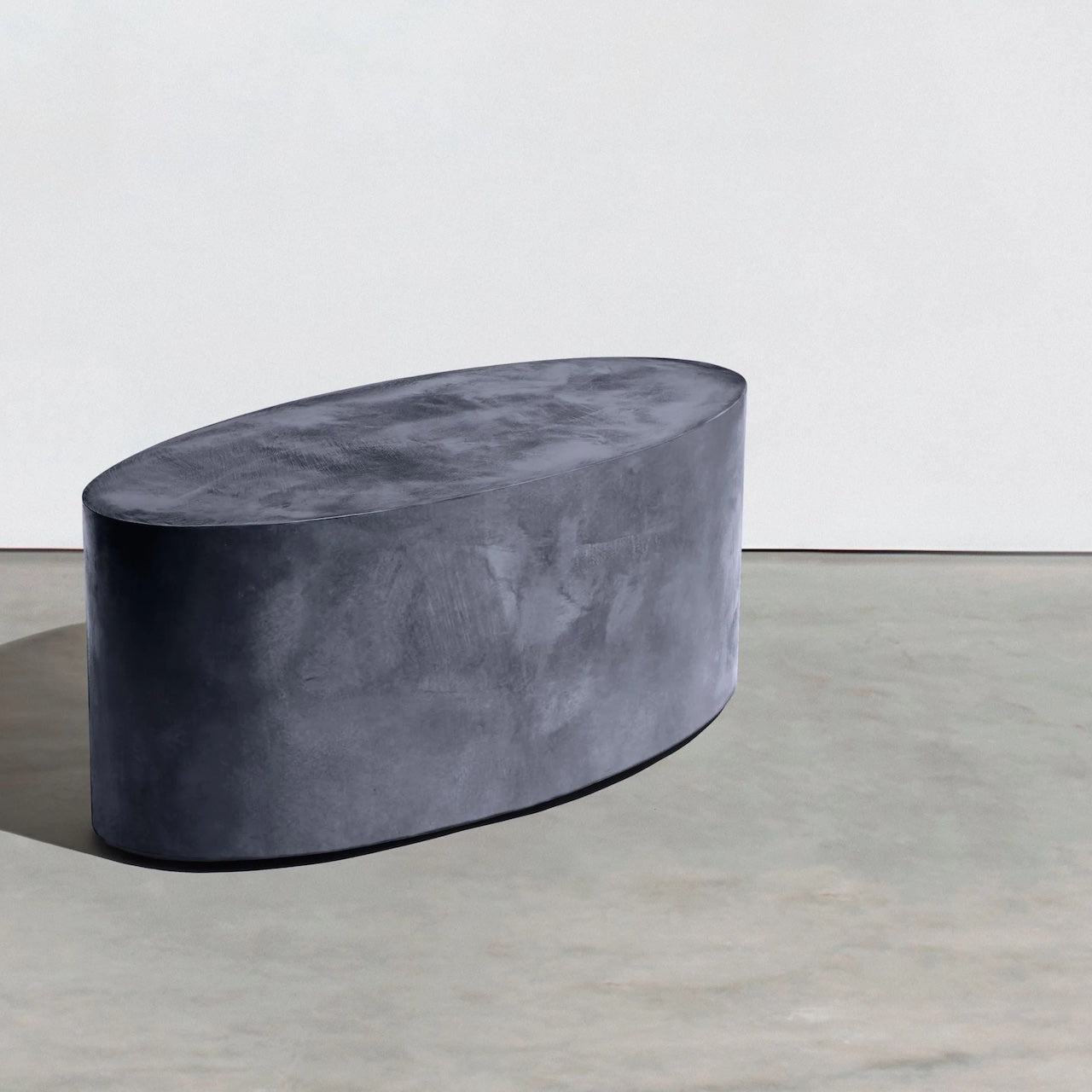 The Elliptical Roller Oval Concrete Coffee Table is available in our standard color palette in a hand-troweled or high-polish finish.