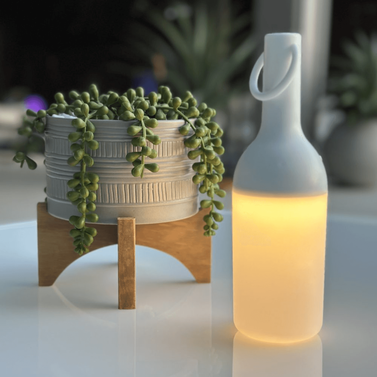 With its iconic bottle shape designed by Bina Baitel, the ELO wireless lamp will naturally fit next to your drinks creating a warm atmosphere, whether for large or small gatherings. Rechargeable, dimmable and weatherproof, ELO can also be hung on. . . Show More