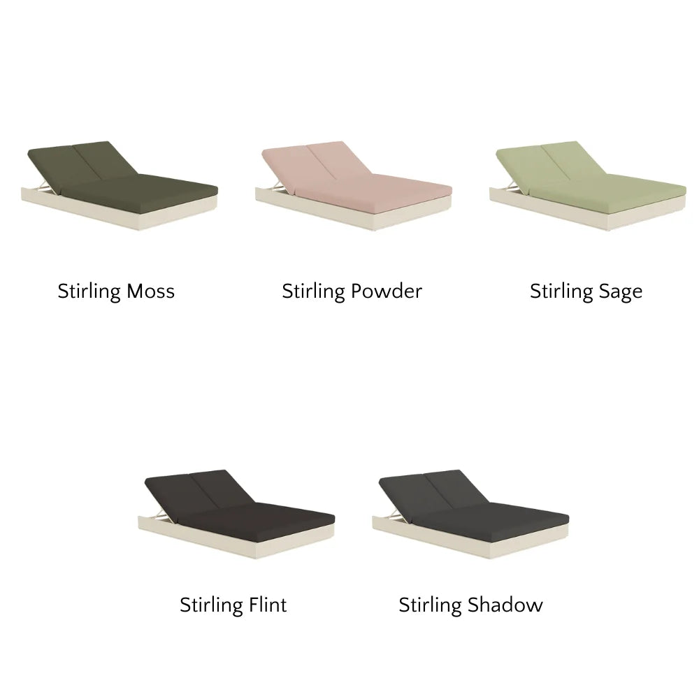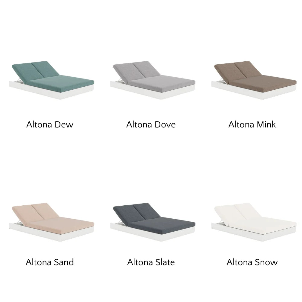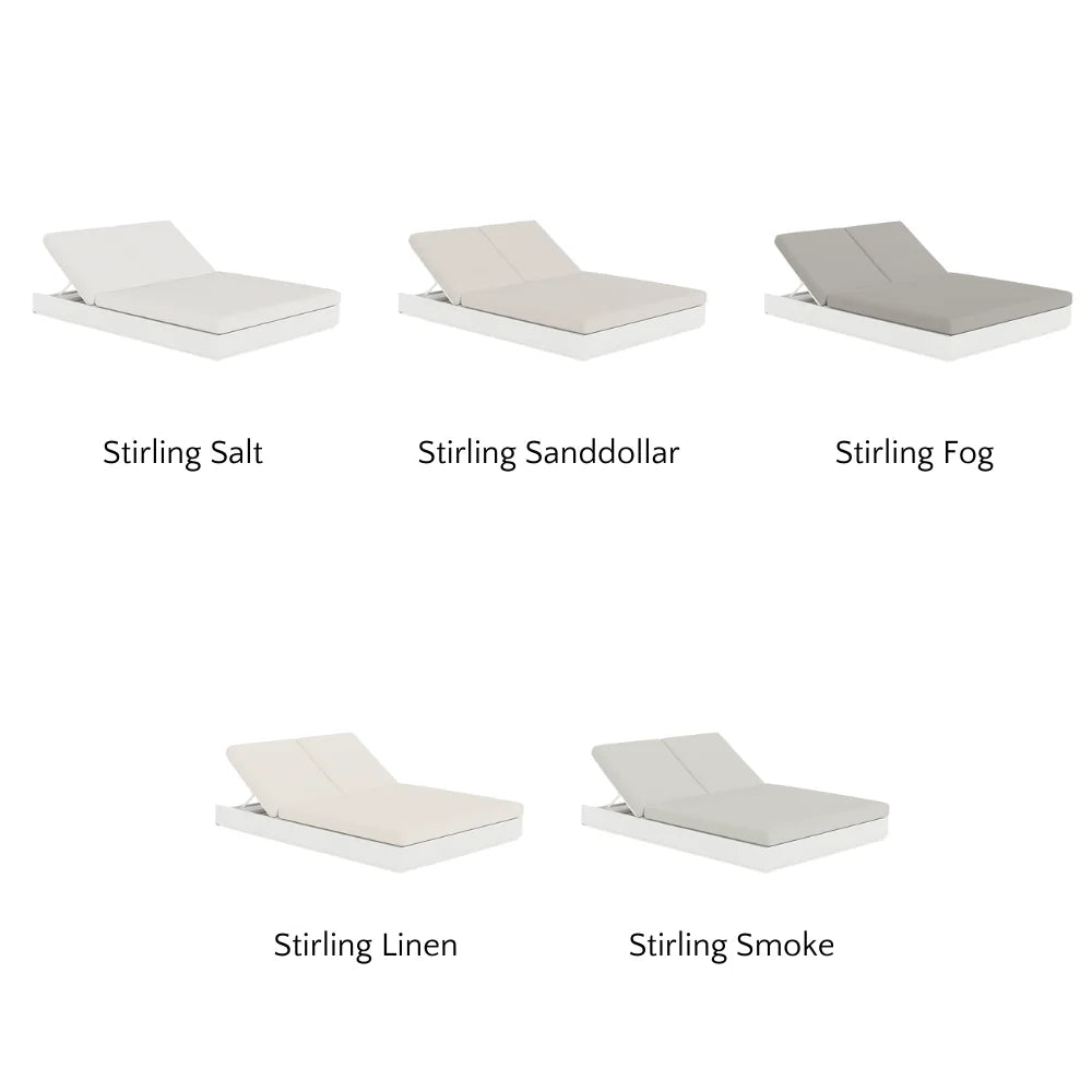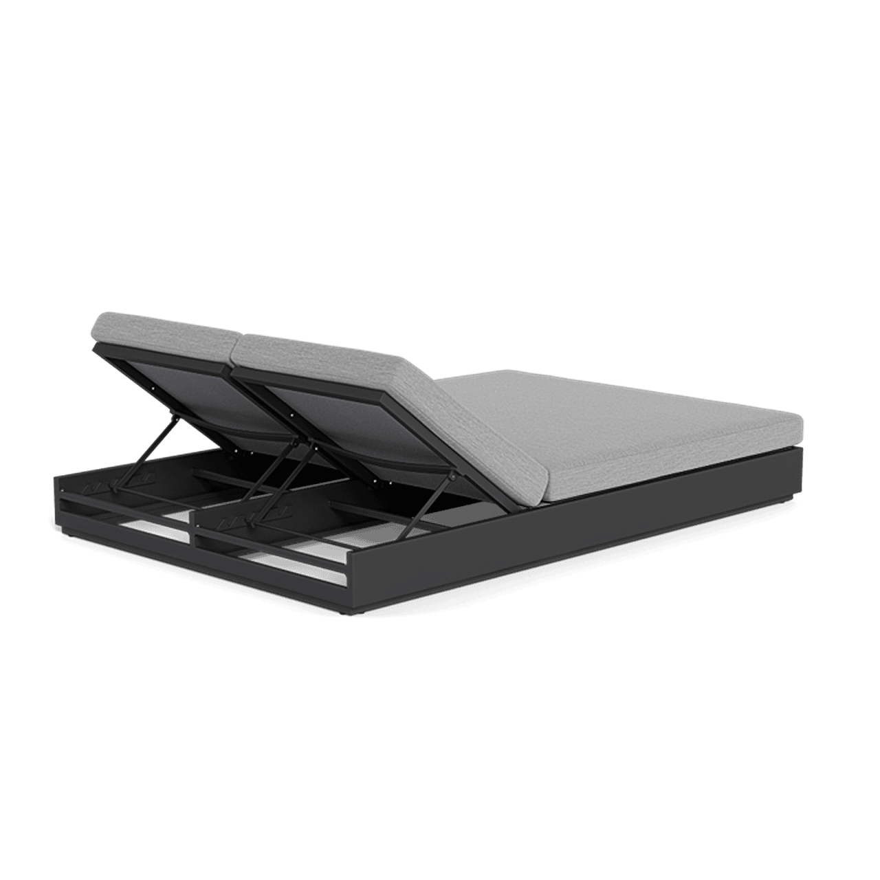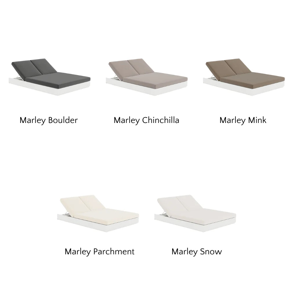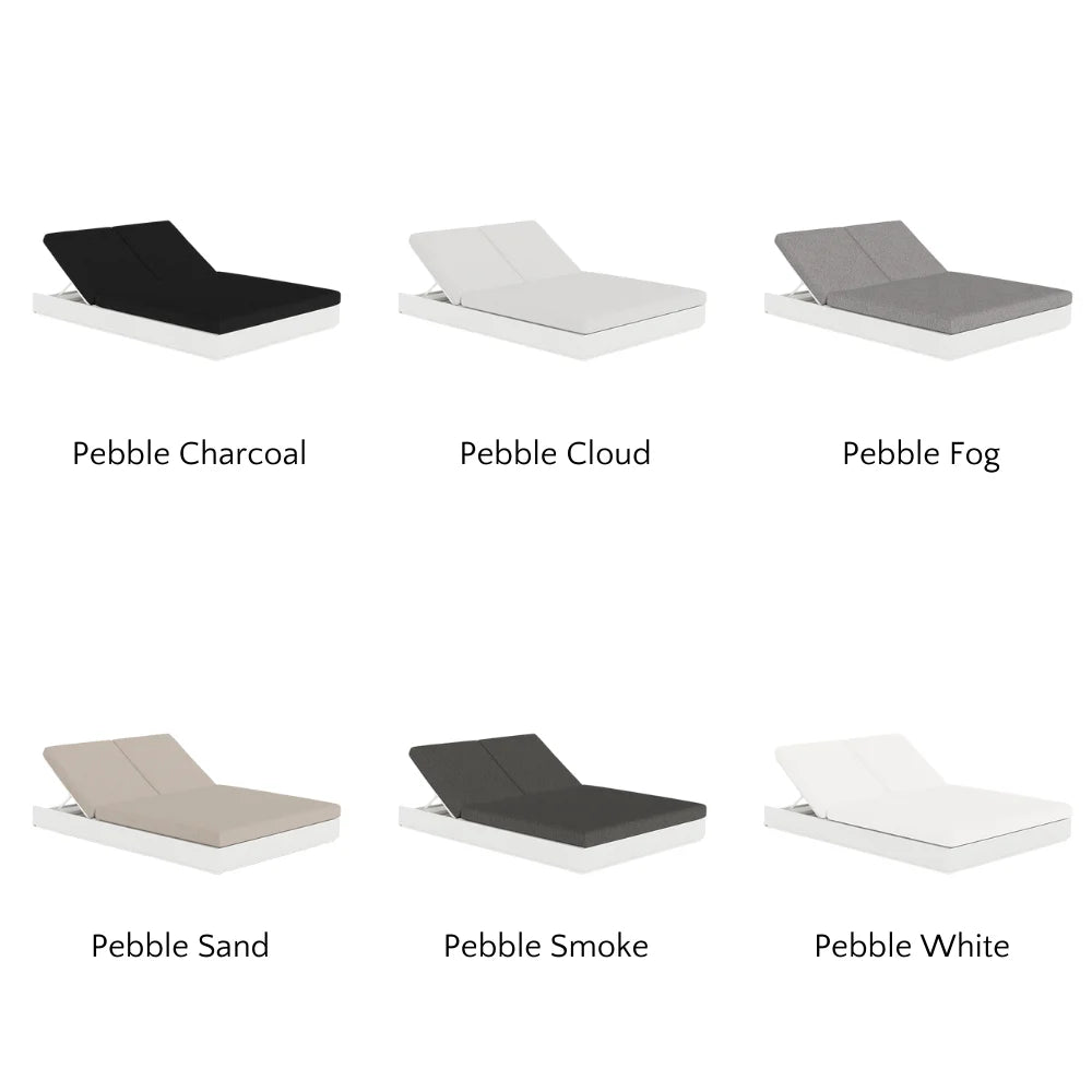 Crafted for ultimate relaxation, our low-profile Double Sun Lounge redefines the outdoor lounging experience. Designed for two, sink into plush hinged cushions supported by a Batyline sling suspension in Silver or White, elegantly floating on a squared plinth base. Seamlessly blending indoor comfort with outdoor performance, this modern double sun lounge is the perfect addition to any patio or pool space. Separate adjustable backs allow for personalized settings, ensuring optimal comfort for each user.