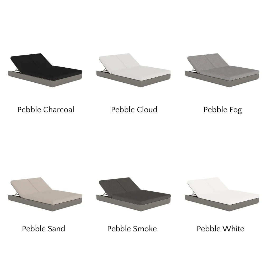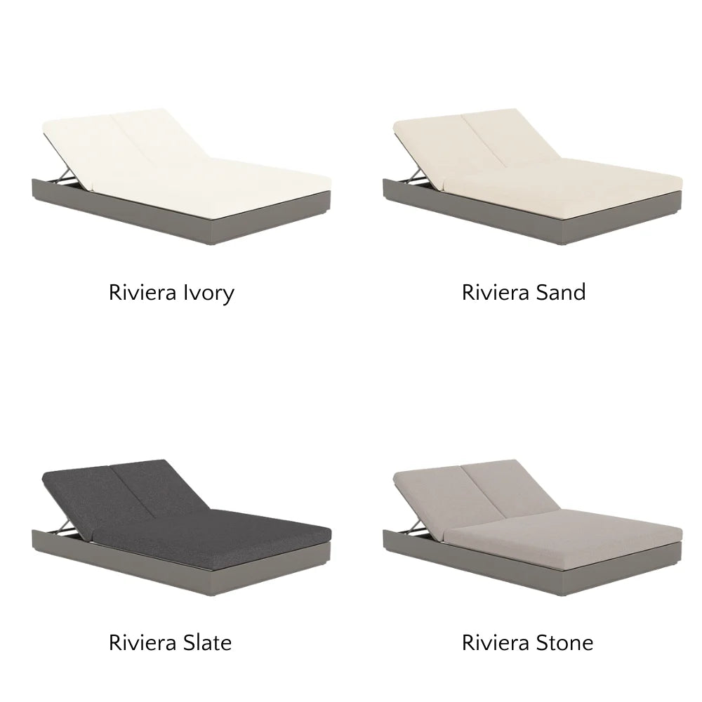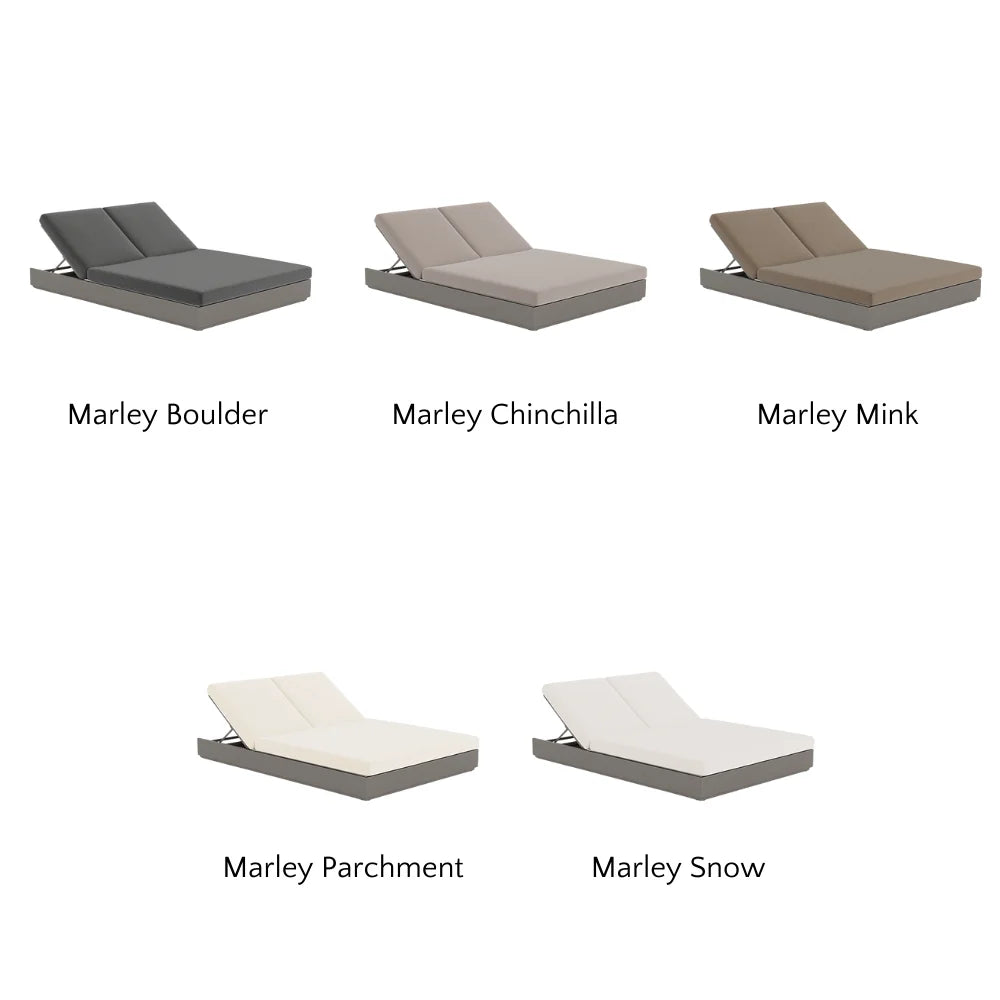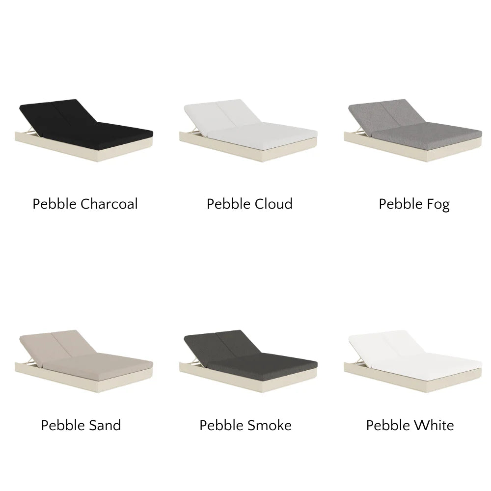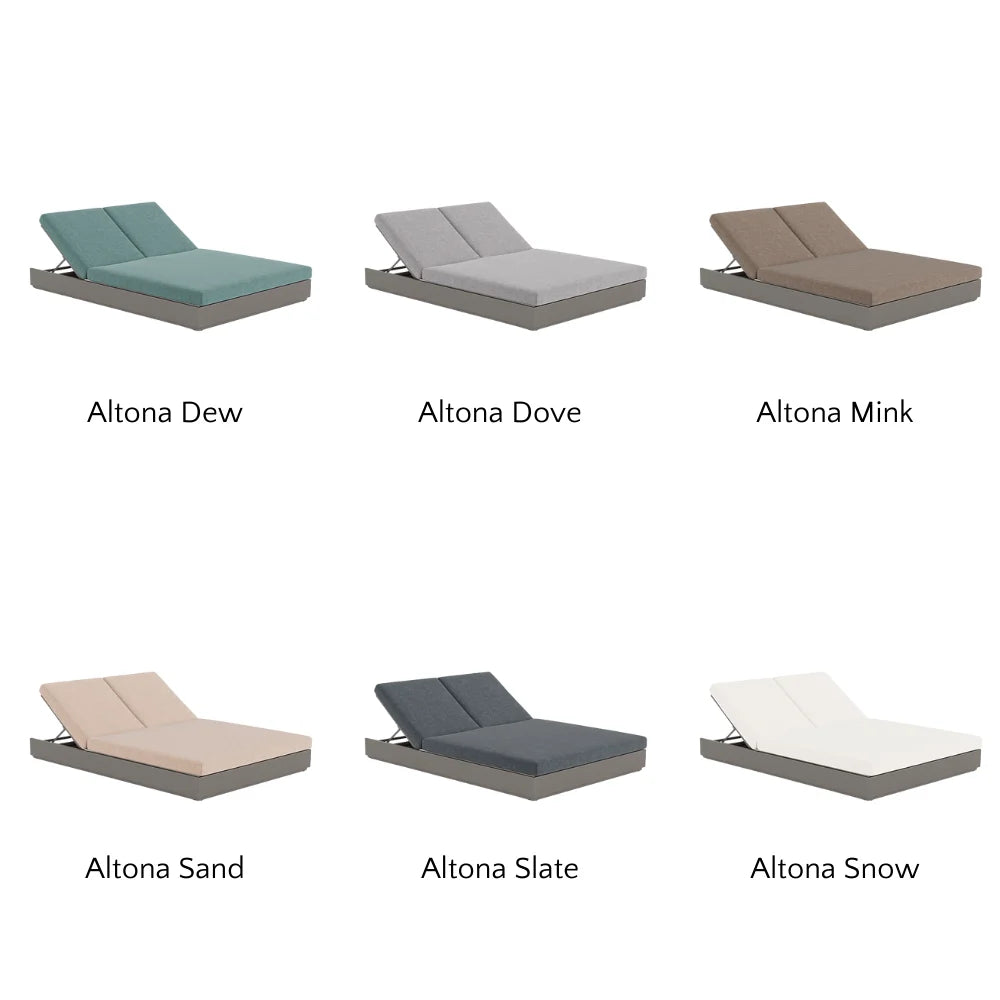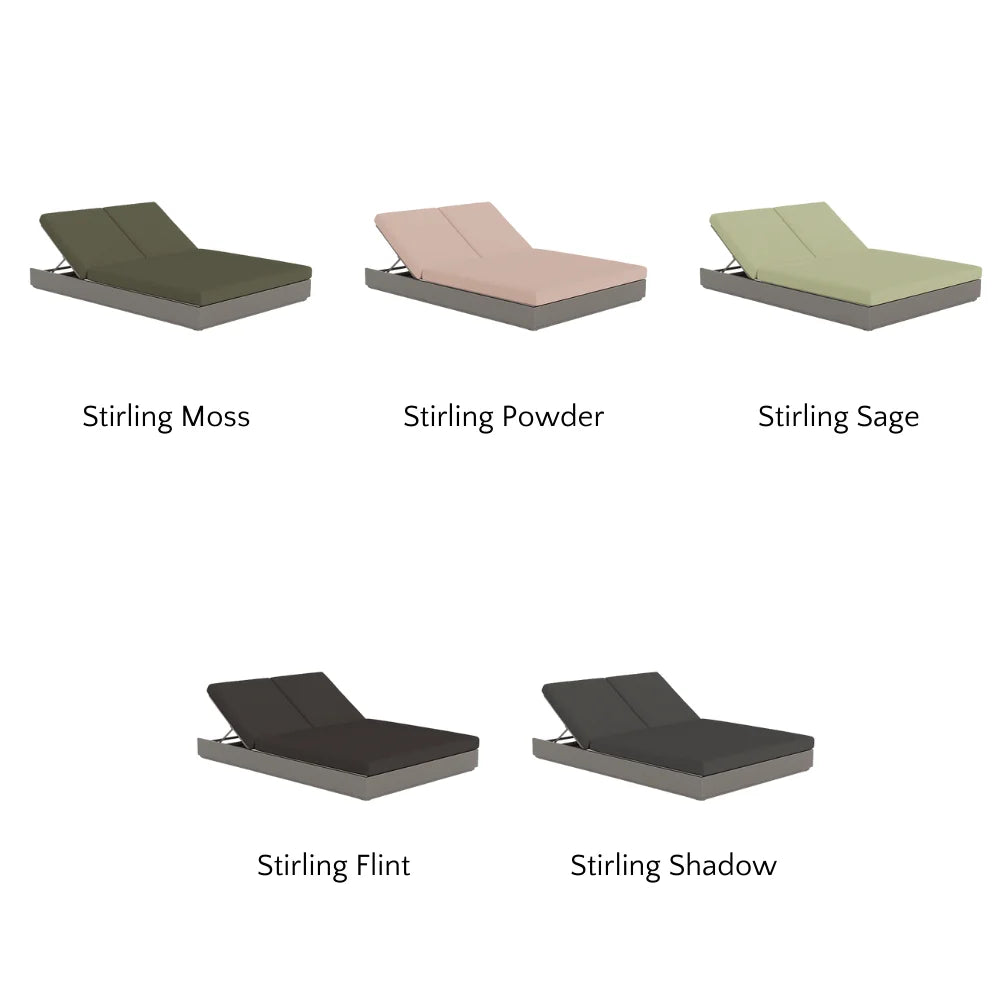 Crafted for ultimate relaxation, our low-profile Double Sun Lounge redefines the outdoor lounging experience. Designed for two, sink into plush hinged cushions supported by a Batyline sling suspension in Silver or White, elegantly floating on a squared plinth base. Seamlessly blending indoor comfort with outdoor performance, this modern double sun lounge is the perfect addition to any patio or pool space. Separate adjustable backs allow for personalized settings, ensuring optimal comfort for each user.