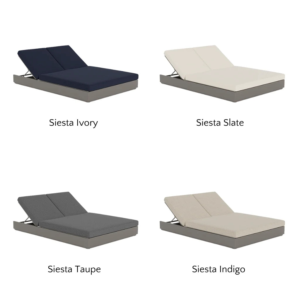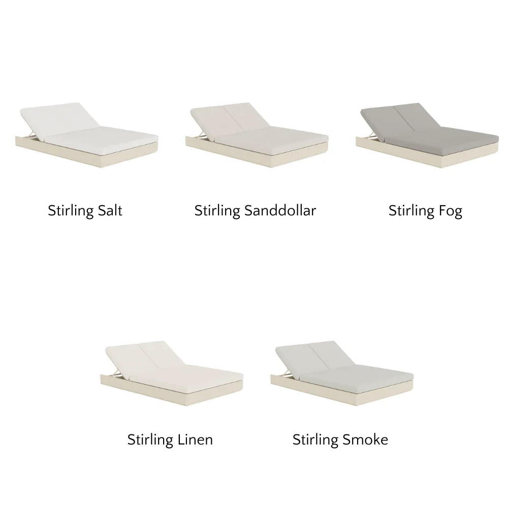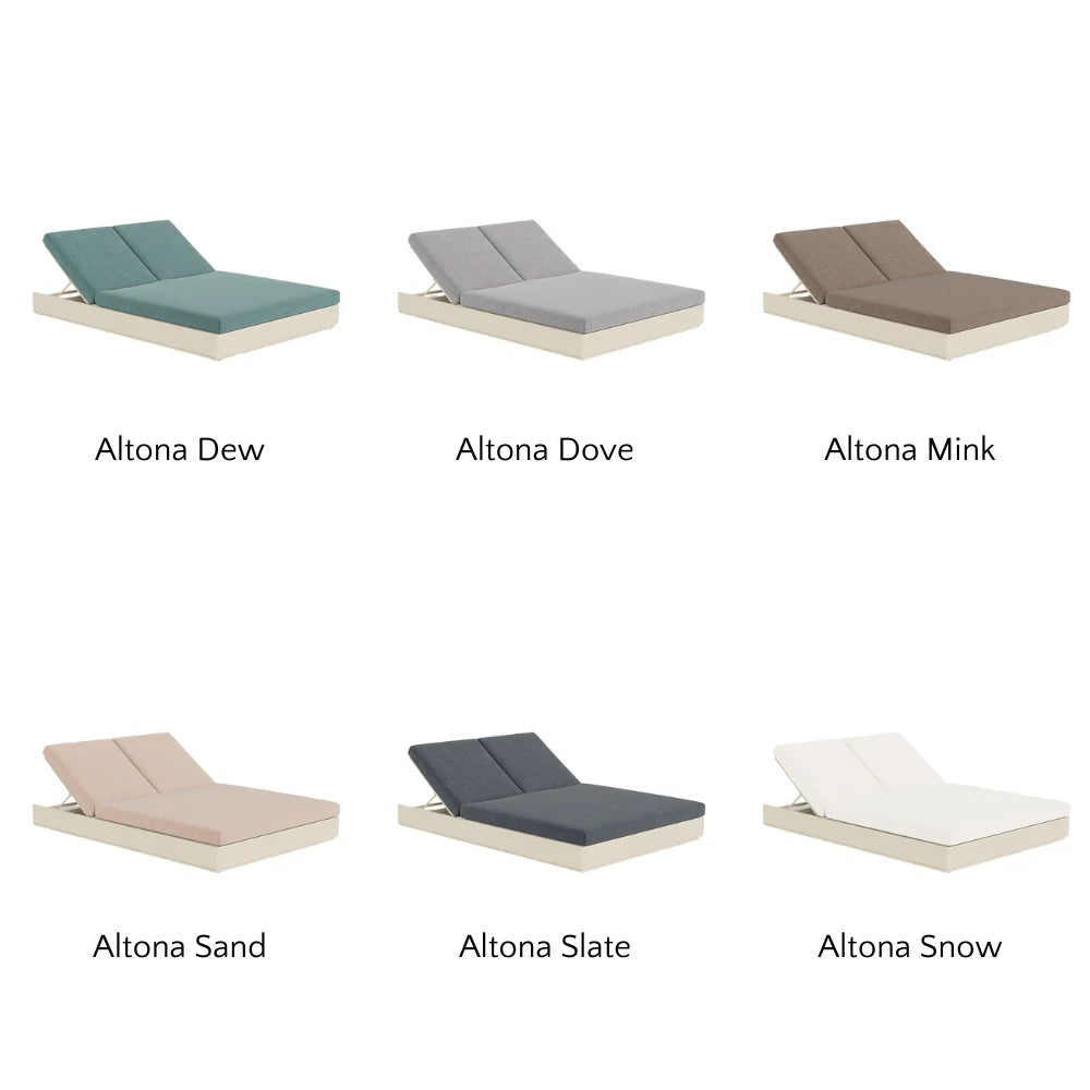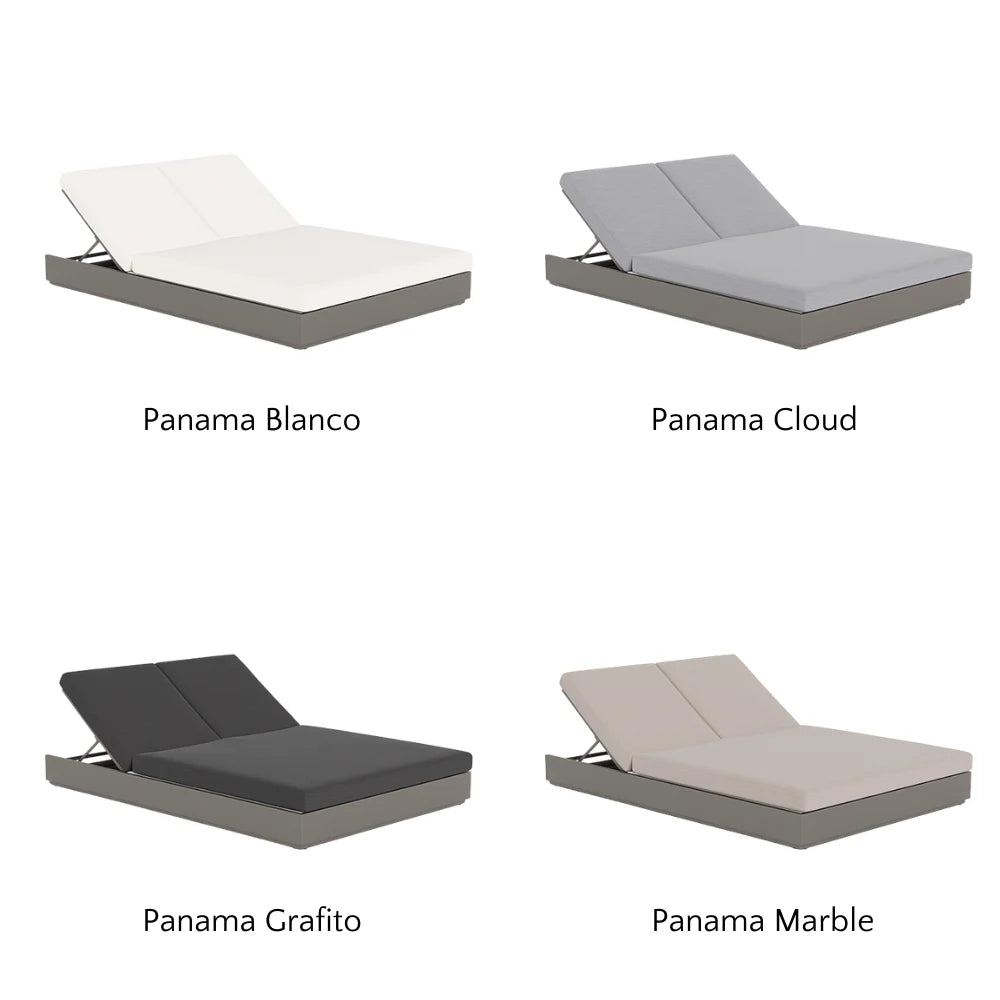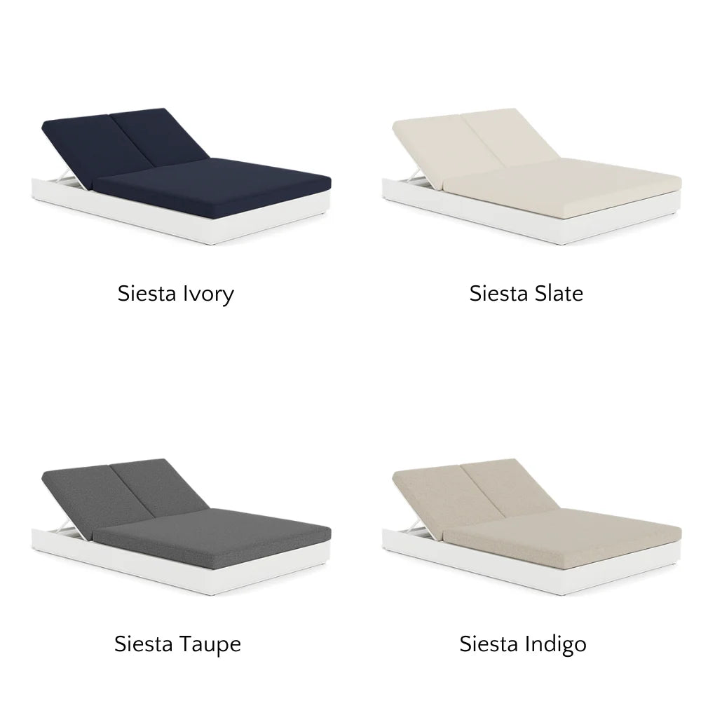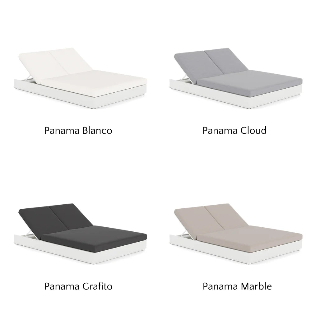 Crafted for ultimate relaxation, our low-profile Double Sun Lounge redefines the outdoor lounging experience. Designed for two, sink into plush hinged cushions supported by a Batyline sling suspension in Silver or White, elegantly floating on a squared plinth base. Seamlessly blending indoor comfort with outdoor performance, this modern double sun lounge is the perfect addition to any patio or pool space. Separate adjustable backs allow for personalized settings, ensuring optimal comfort for each user.