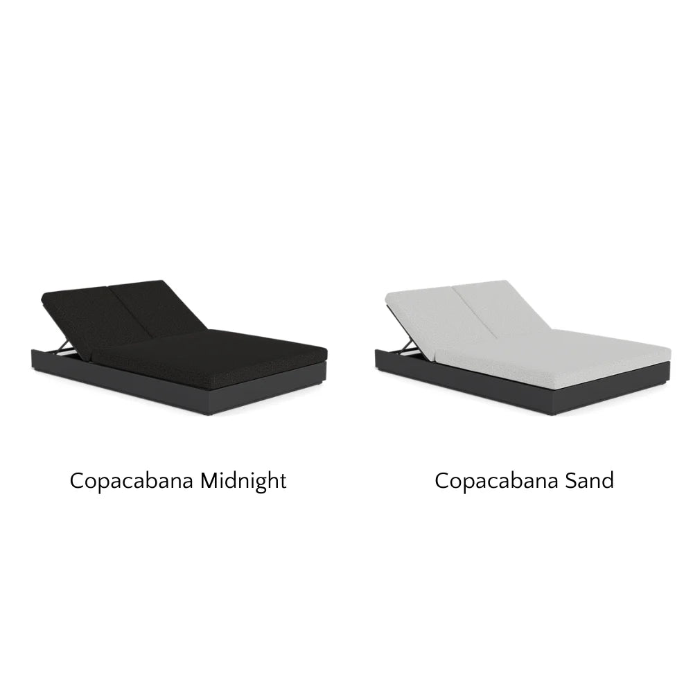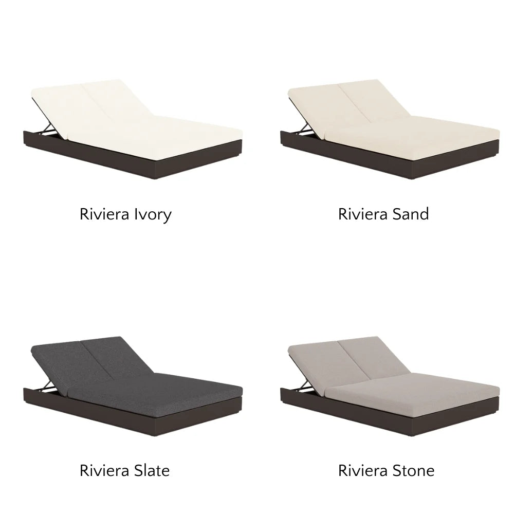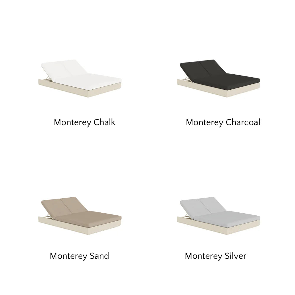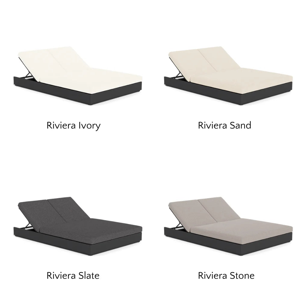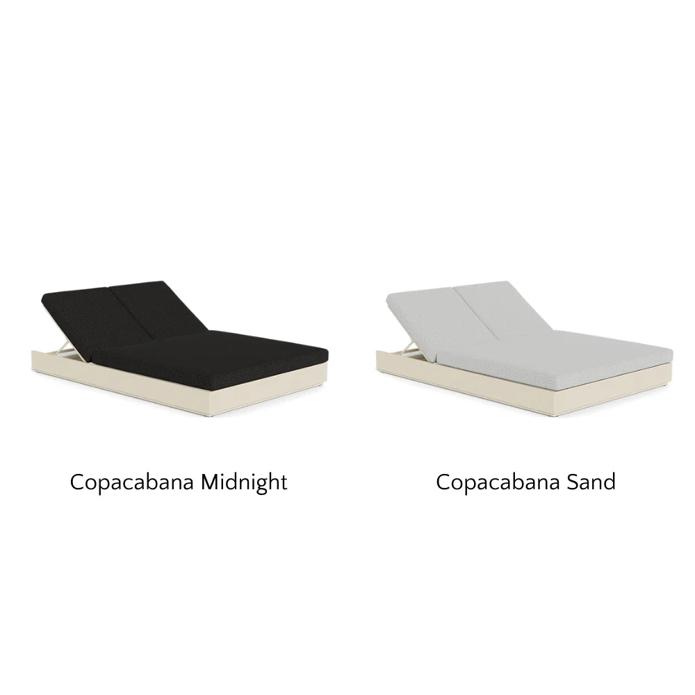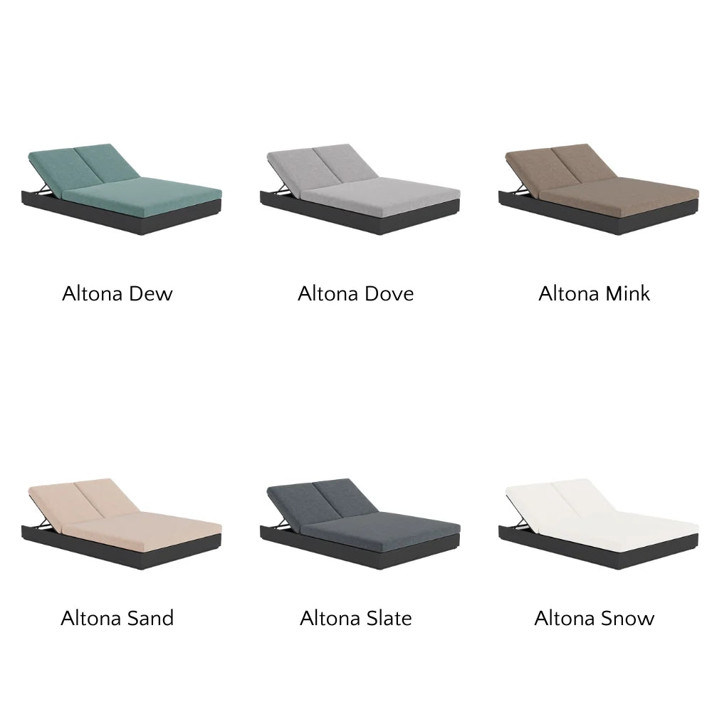 Crafted for ultimate relaxation, our low-profile Double Sun Lounge redefines the outdoor lounging experience. Designed for two, sink into plush hinged cushions supported by a Batyline sling suspension in Silver or White, elegantly floating on a squared plinth base. Seamlessly blending indoor comfort with outdoor performance, this modern double sun lounge is the perfect addition to any patio or pool space. Separate adjustable backs allow for personalized settings, ensuring optimal comfort for each user.