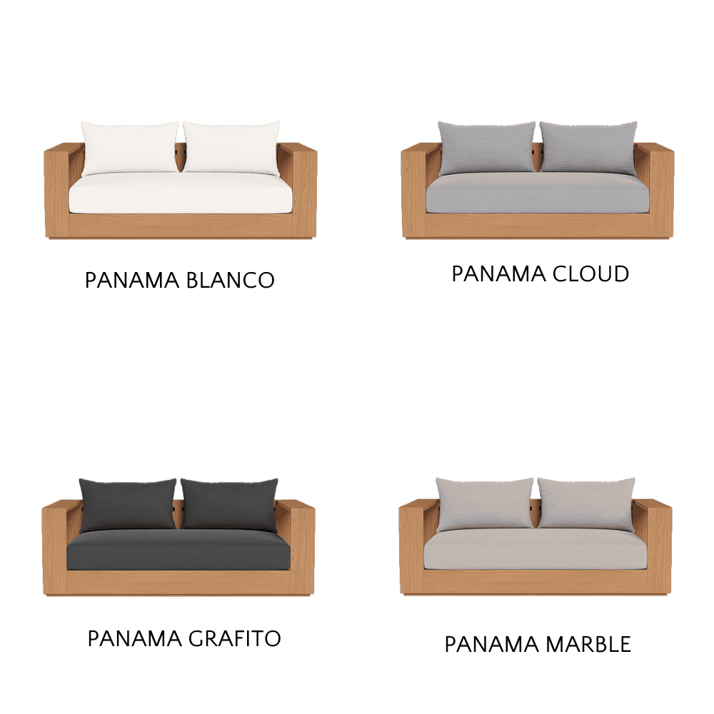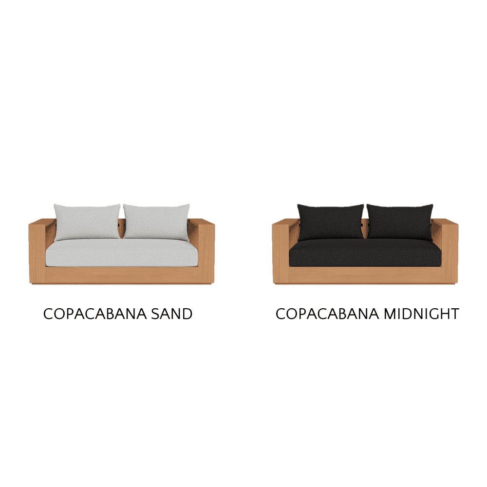 Each sofa comes complete with 1 seat cushion and 2 knife-edge back cushions, engineered to withstand outdoor elements such as mildew, stains, and fading.