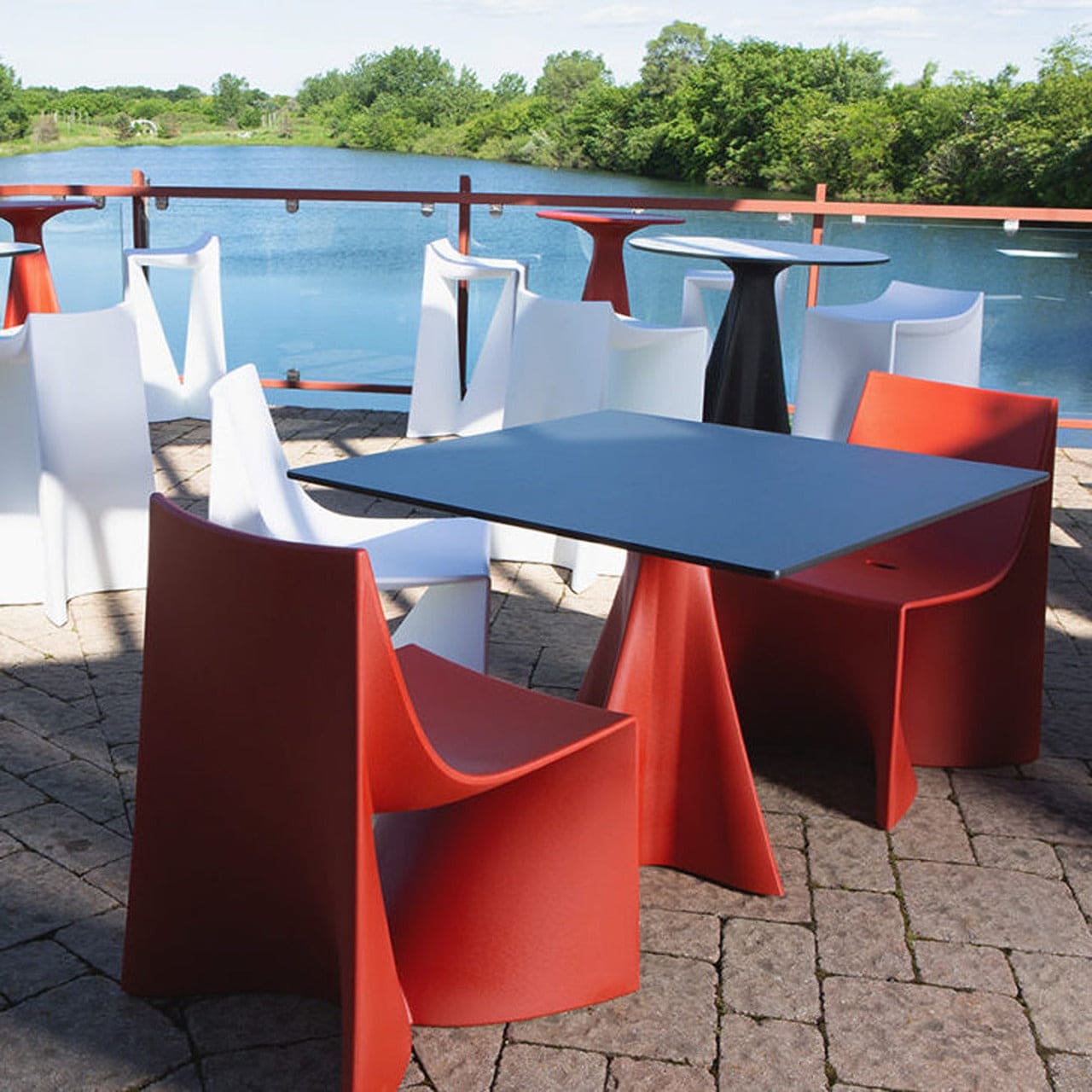 Shopboxhill's Jux emerges as an ode to the fusion of artistry and functionality, a captivating journey of a stretched, continuous form artfully folded and elegantly flared. This dynamic dining set transcends the ordinary, offering an array of size and finish options meticulously tailored to any environment. While it boasts smooth and sculptural aesthetics, it never compromises on the core values of strength and durability.