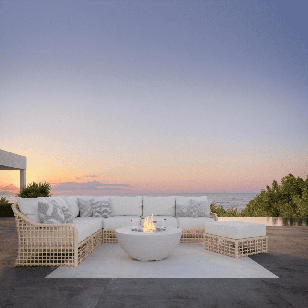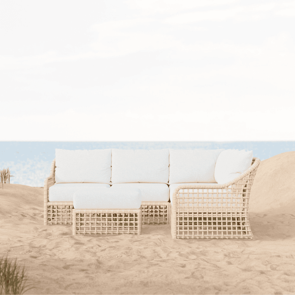 Boxhill's Kiawah Outdoor Corner Chair and Modular Sectional seamlessly blend natural charm with contemporary aesthetics for any outdoor setting. Crafted with durable, all-weather wicker in a classic rattan style, it endures harsh elements while providing luxurious comfort with its spacious design. With its array of interchangeable components, Kiawah effortlessly adapts to various layouts and atmospheres, making it ideal for outdoor wicker sectional patio furniture arrangements. Functional and elegant, it boasts endless modularity, catering to every outdoor space need, whether for lounging or entertaining, and is perfect for outdoor sofas and sectionals.