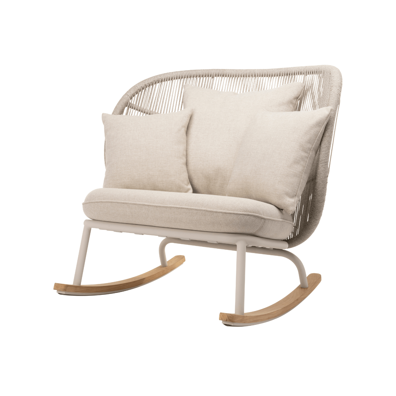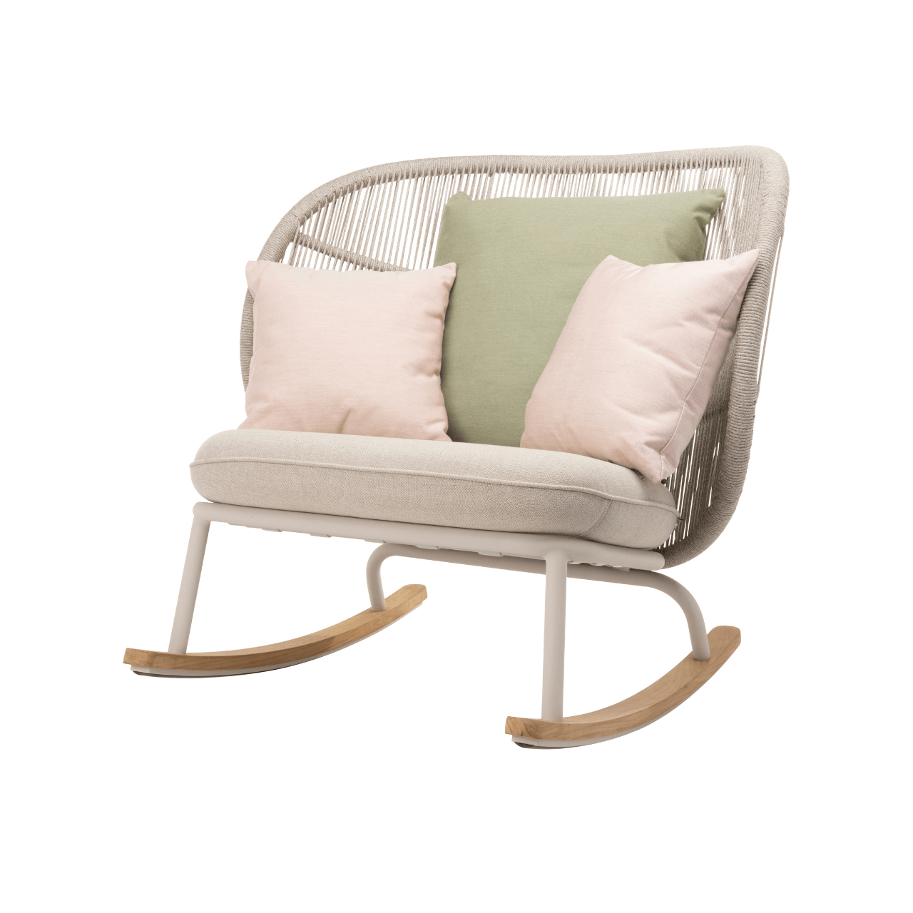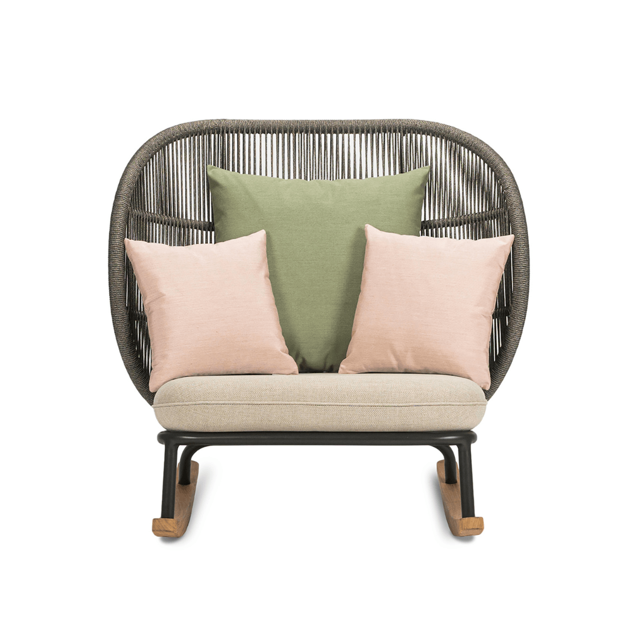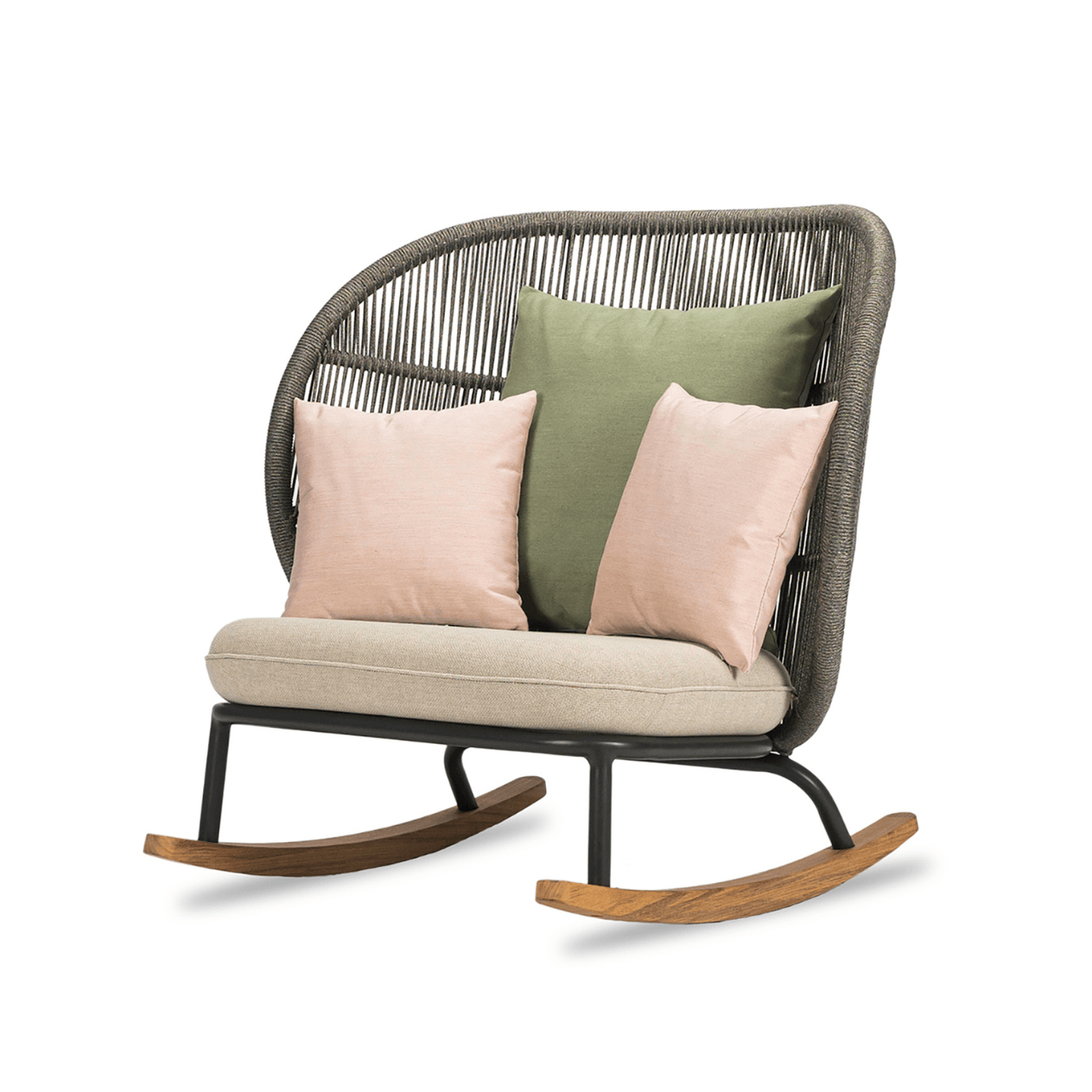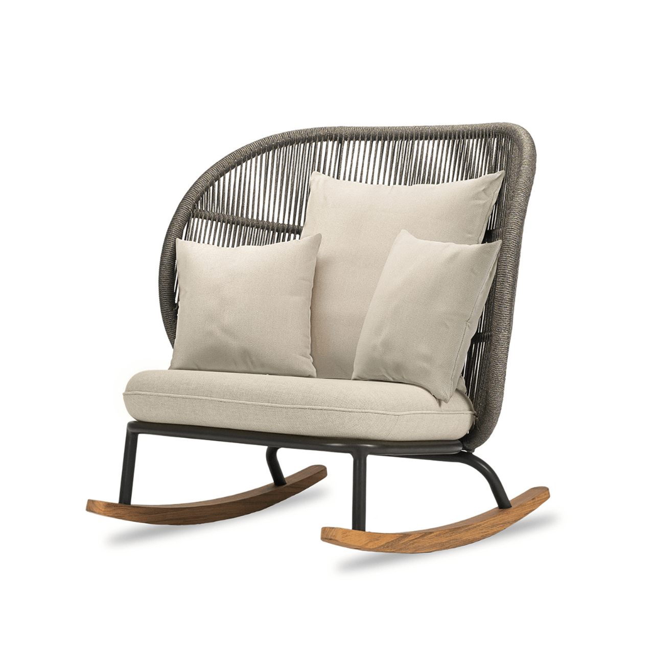 Comfort and style reign supreme with the Kodo Rocking Chair. Built with a strong aluminum frame and sturdy teak root rockers, this is far from your grandma's rocking chair. The unique high back design and acrylic fiber exterior keep you supported and allow for a comfortable. . . Show More
