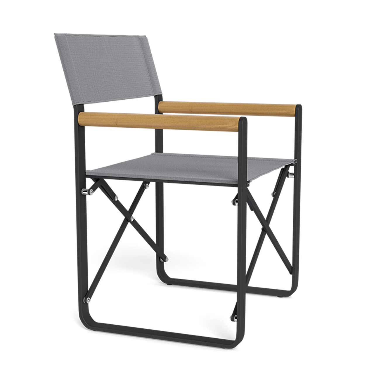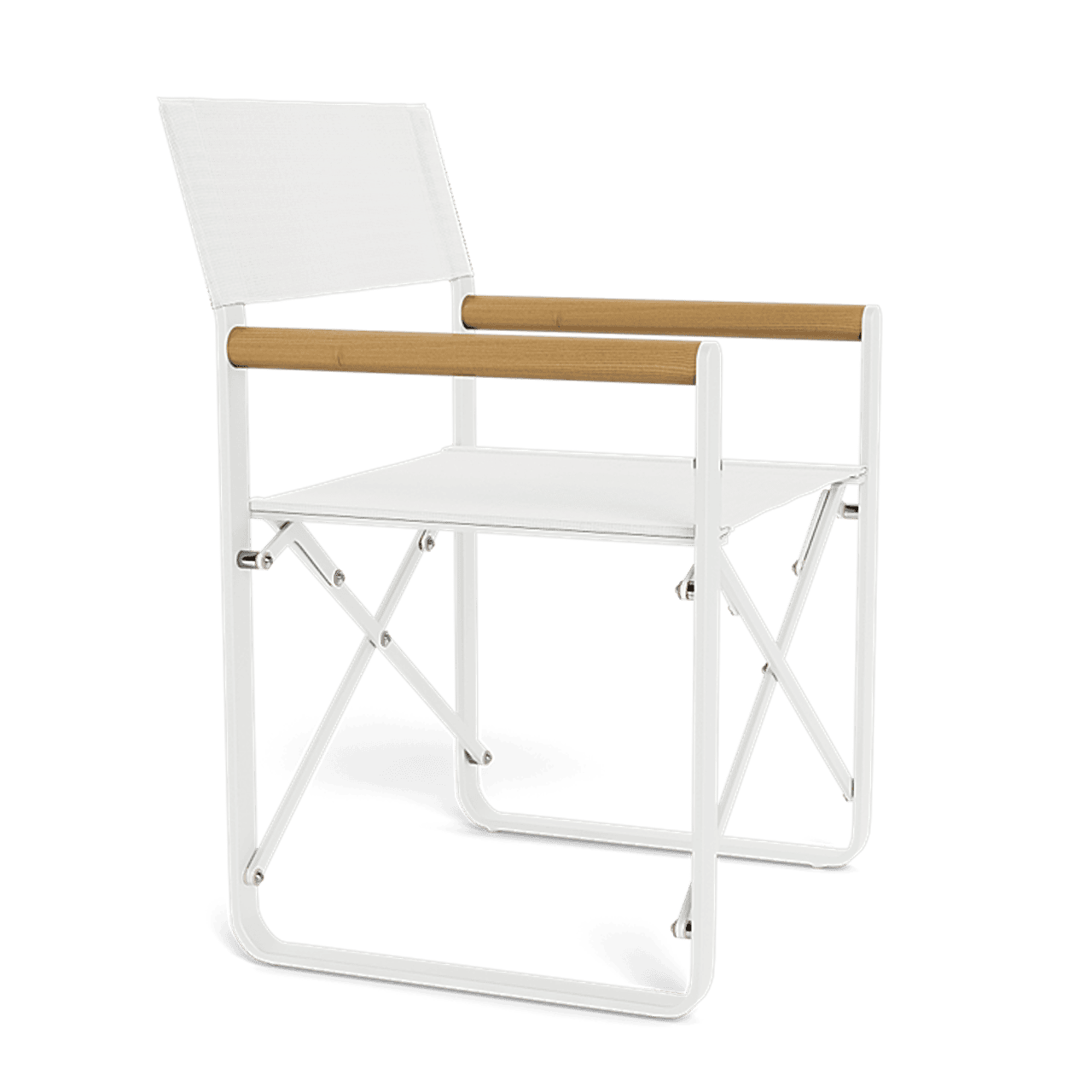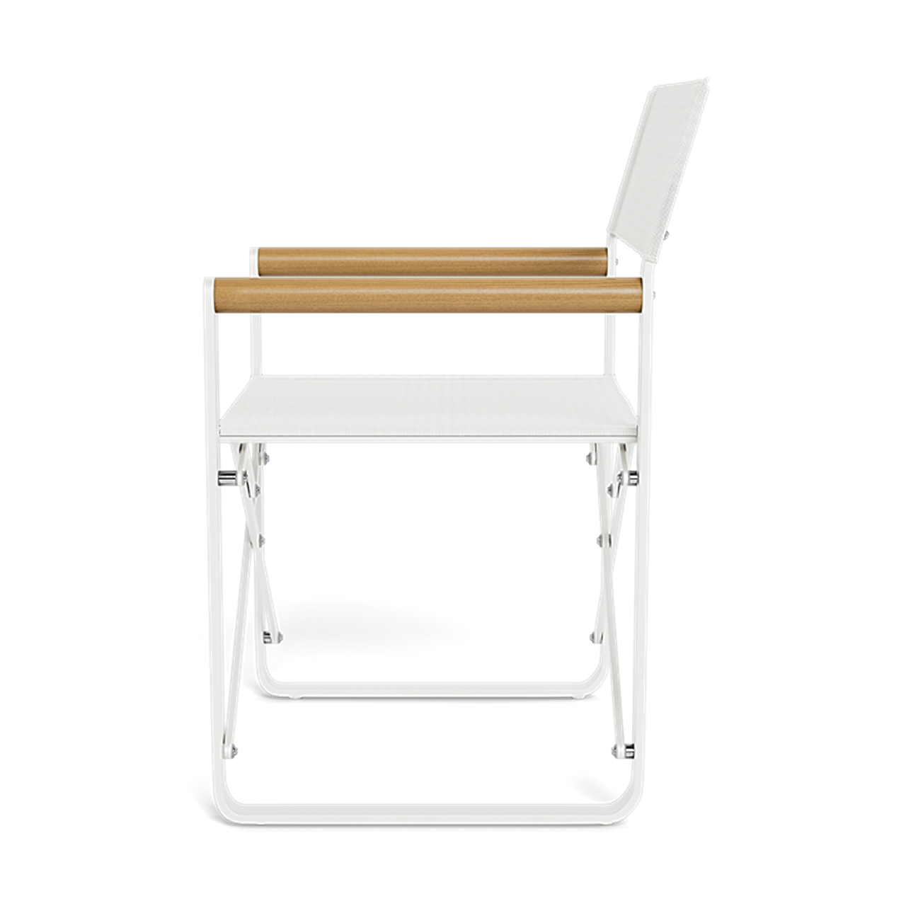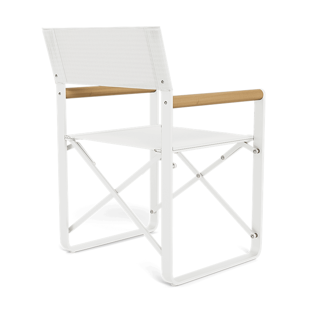 Introducing our LCA Outdoor collection, a modern take on the traditional director's chair, fusing diverse materials to add a touch of luxury. The LCA Director Outdoor Chair redefines folding seating with elegance, showcasing a Batyline mesh seat gracefully perched on a sturdy aluminum frame, recognized for its durability and nearly indestructible nature. With teak arms adding a contemporary contrast, this chair not only delivers a stylish aesthetic but also ensures a refreshing coolness in the sun. Serving as an outdoor essential, it enhances any setting and is poised to become a cherished favorite for years to come.