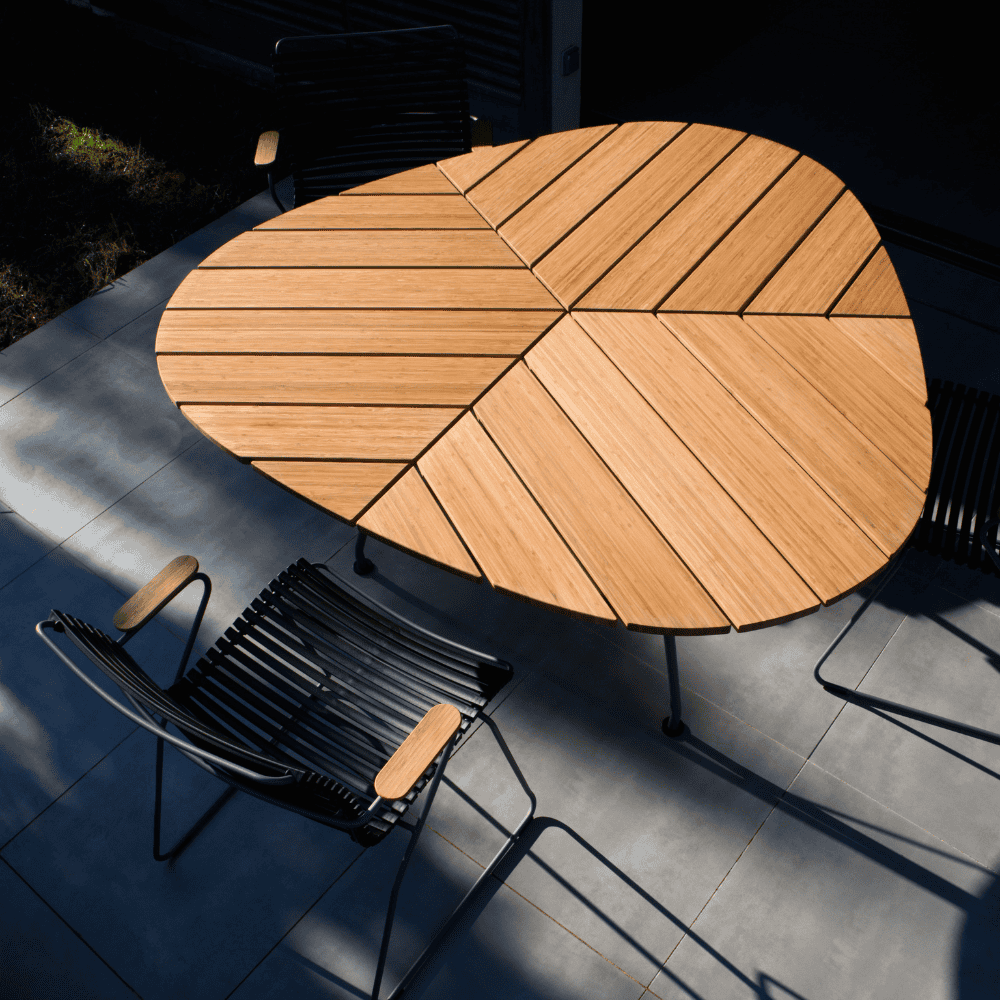 LEAF - A beautiful garden table that really looks like a leaf. The triangular form and the table construction which is drawn in under the table makes it possible to seat 6 - or even more people around the table. The bamboo. . . Show More