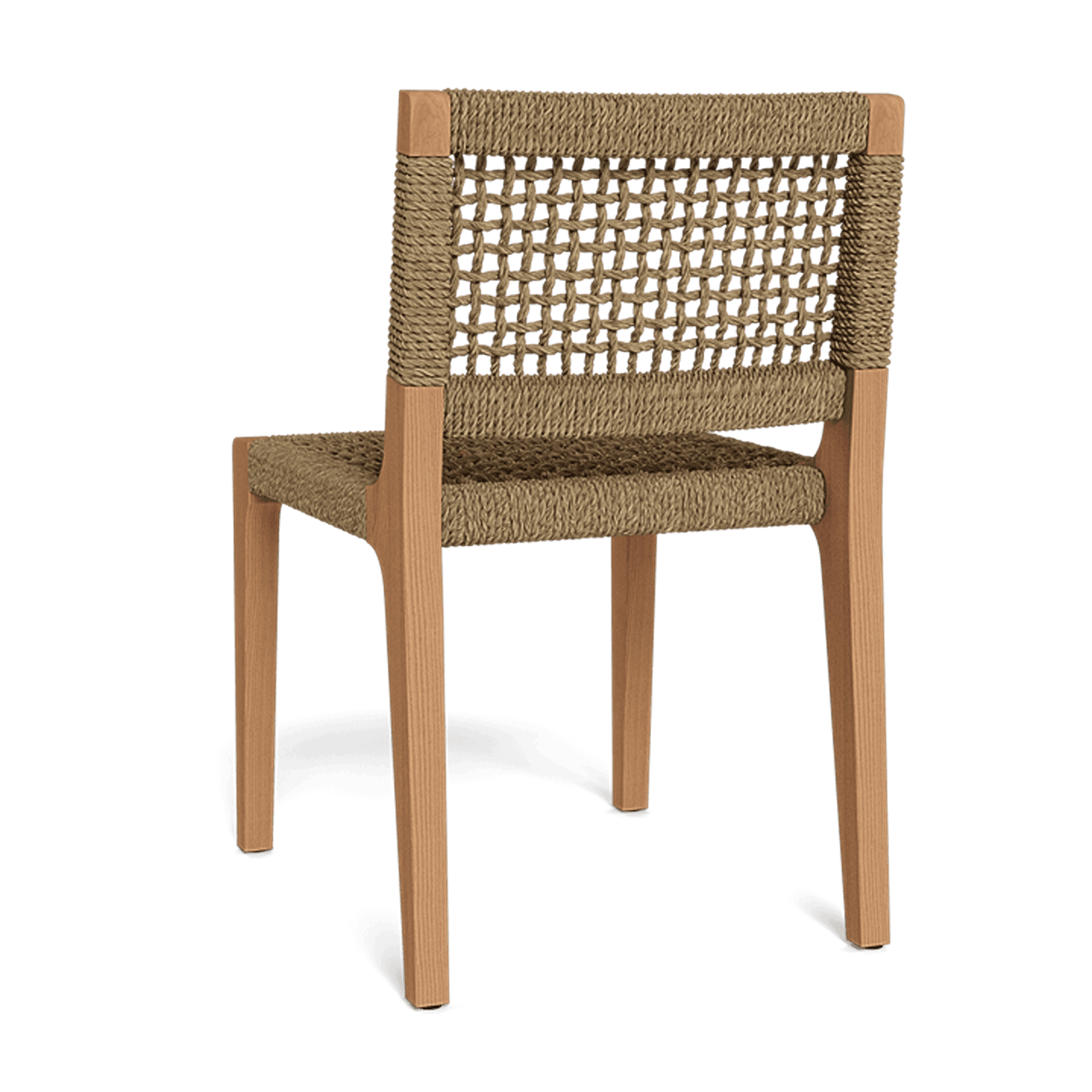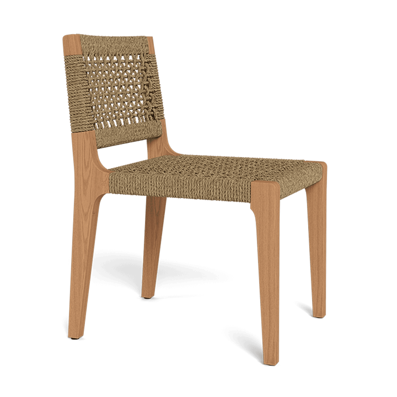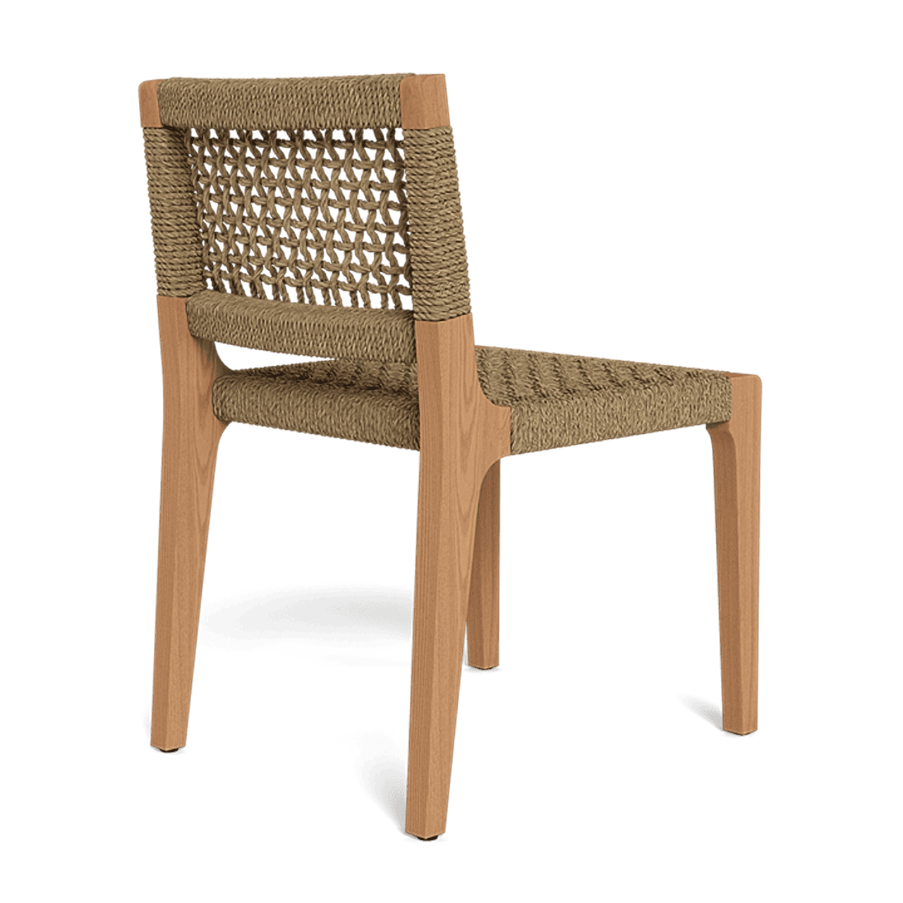 Inspired by the comfort of indoor sling chairs, the MLB Outdoor Armless Dining Chair boasts a unique design, featuring a hand-wrapped back and seat with twisted resin rope. This intricate detailing not only enhances the chair's inviting aesthetic but also elevates its comfort.