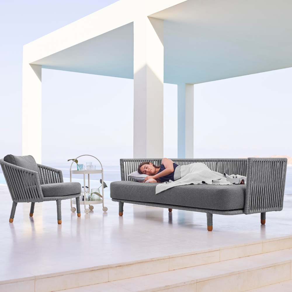 Crafted by the esteemed Danish design duo Foersom & Hiort-Lorenzen MDD, the Moments Outdoor Lounge Chair sets a new standard for versatile design with its elegant, minimalistic Scandinavian aesthetic. Designed to elevate your outdoor lounging experience, it is produced using Soft Rope and AirTouch QuickDry cushions, ensuring both comfort and durability. The innovative QuickDry system guarantees your comfort by swiftly drying the cushions approximately one hour after rain showers, allowing you to enjoy uninterrupted relaxation. Whether you're seeking outdoor lounge chairs for poolside lounging or a cozy set for your patio, this chair offers both style and functionality. Moments provides the perfect solution for your outdoor relaxation needs.