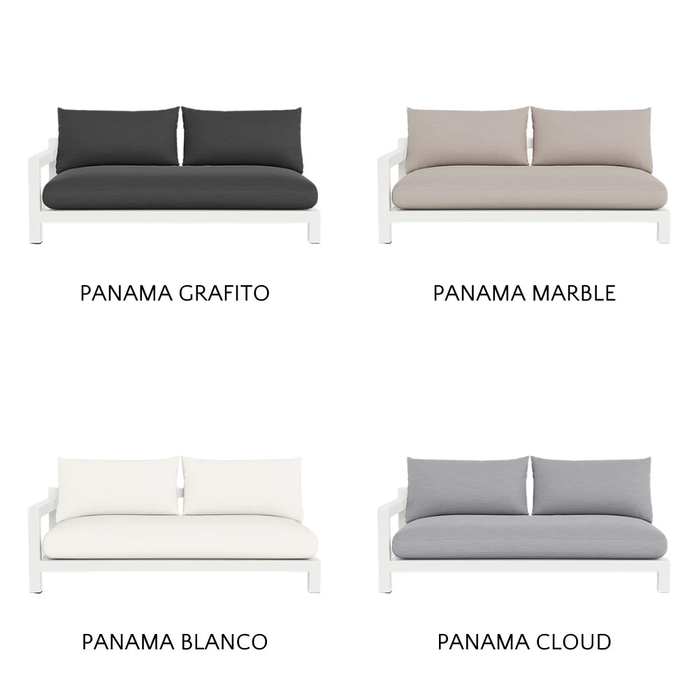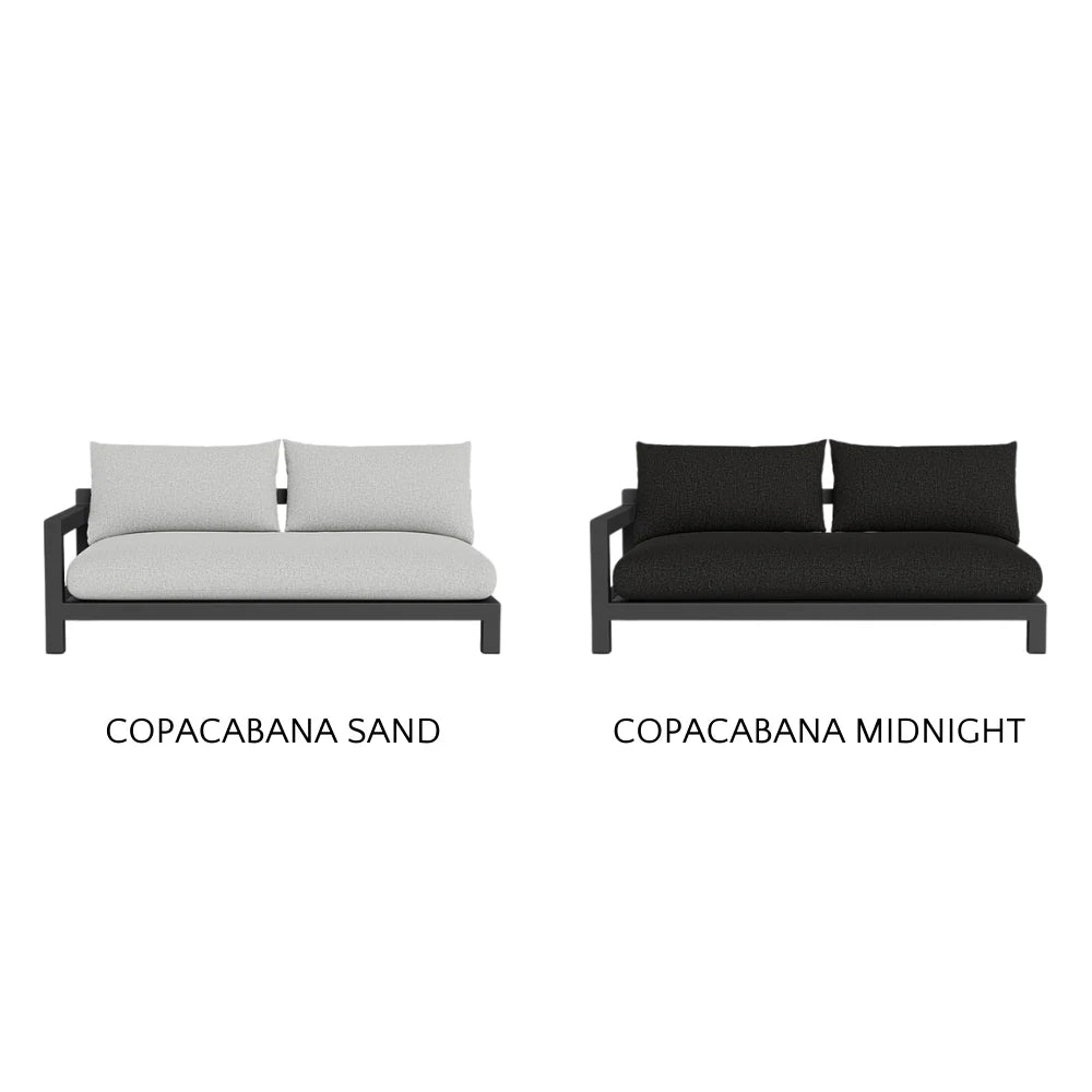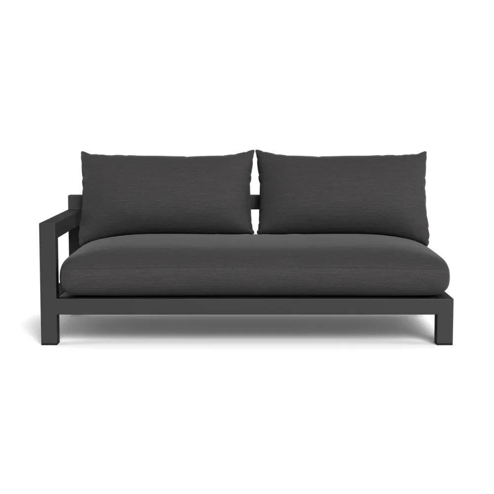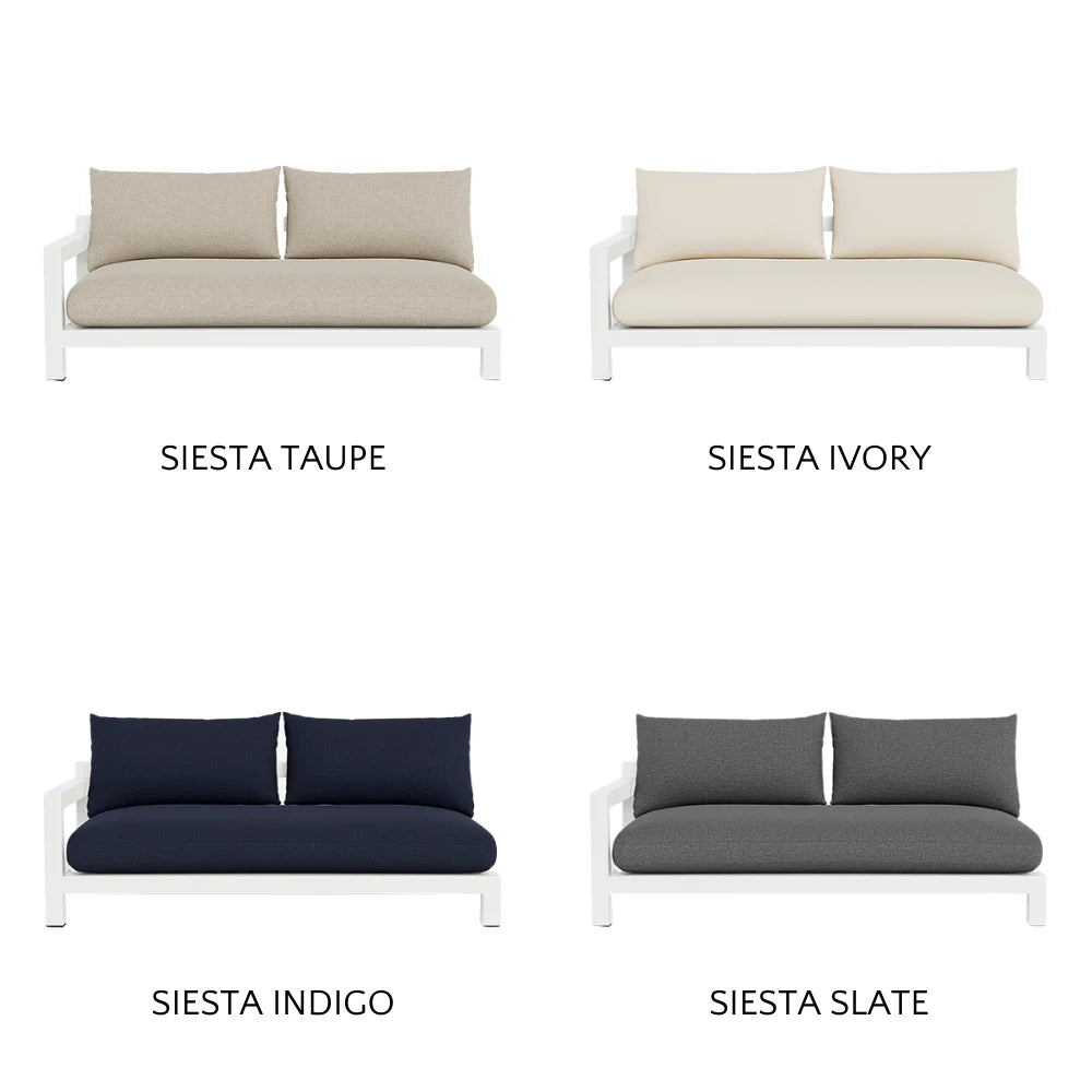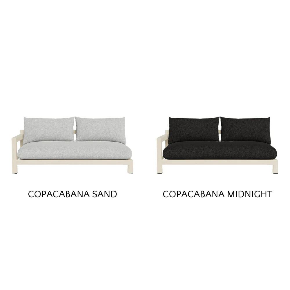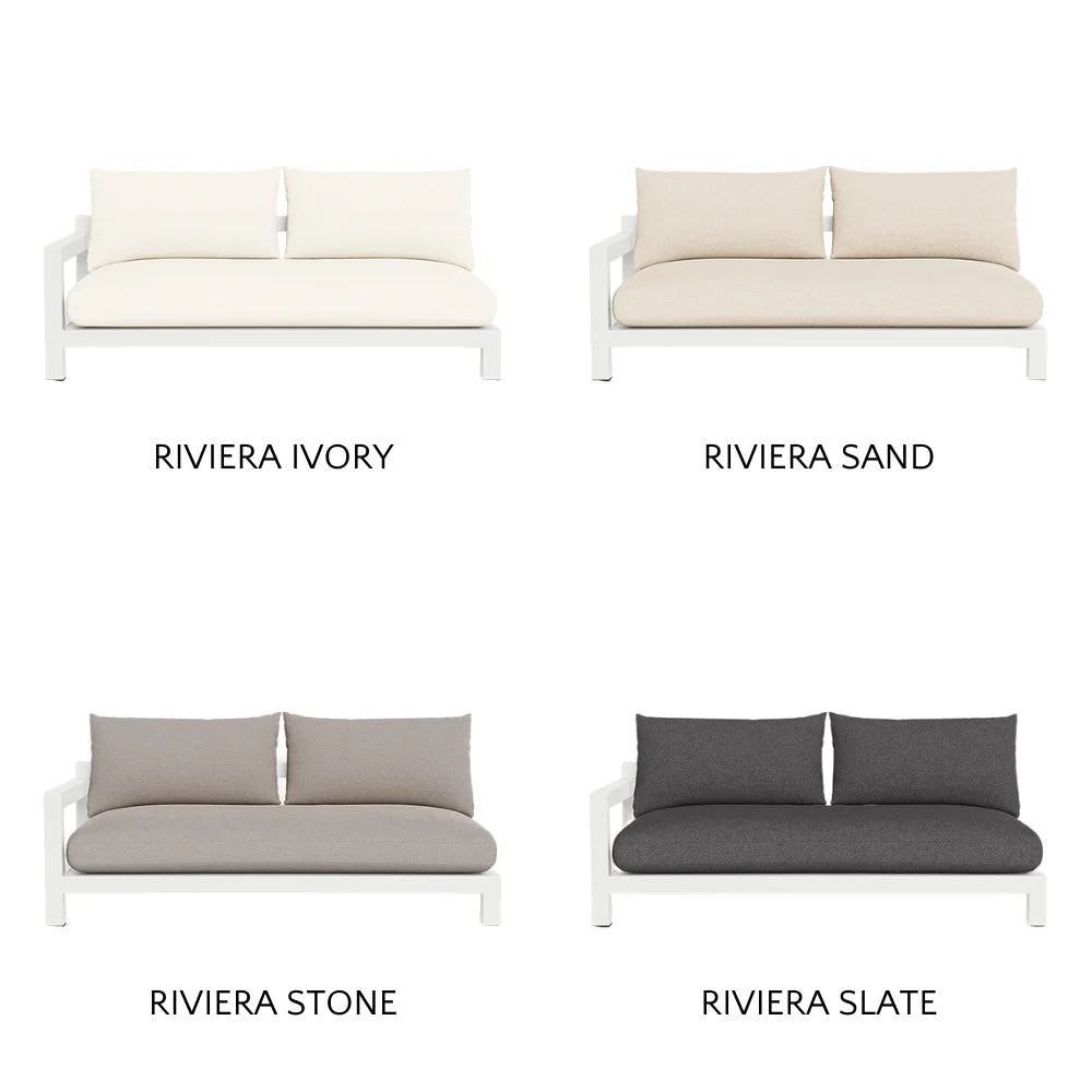 Our Pacific Aluminum collection features clean lines with a California rustic essence. Part of our sectional collection, the Pacific Aluminum 2 Seat 1 Arm is streamlined comfort — relax on a plush domed bench cushion with a pair of knife-edge back cushions, supported by a Batyline sling suspension in Silver or White for added comfort. in White, Taupe or Asteroid, this piece effortlessly fits in any space — and uniquely features a universal arm that can be used as a left or a right, making it even more versatile. Pair it with a Corner and another component to extend it as a sectional sofa.